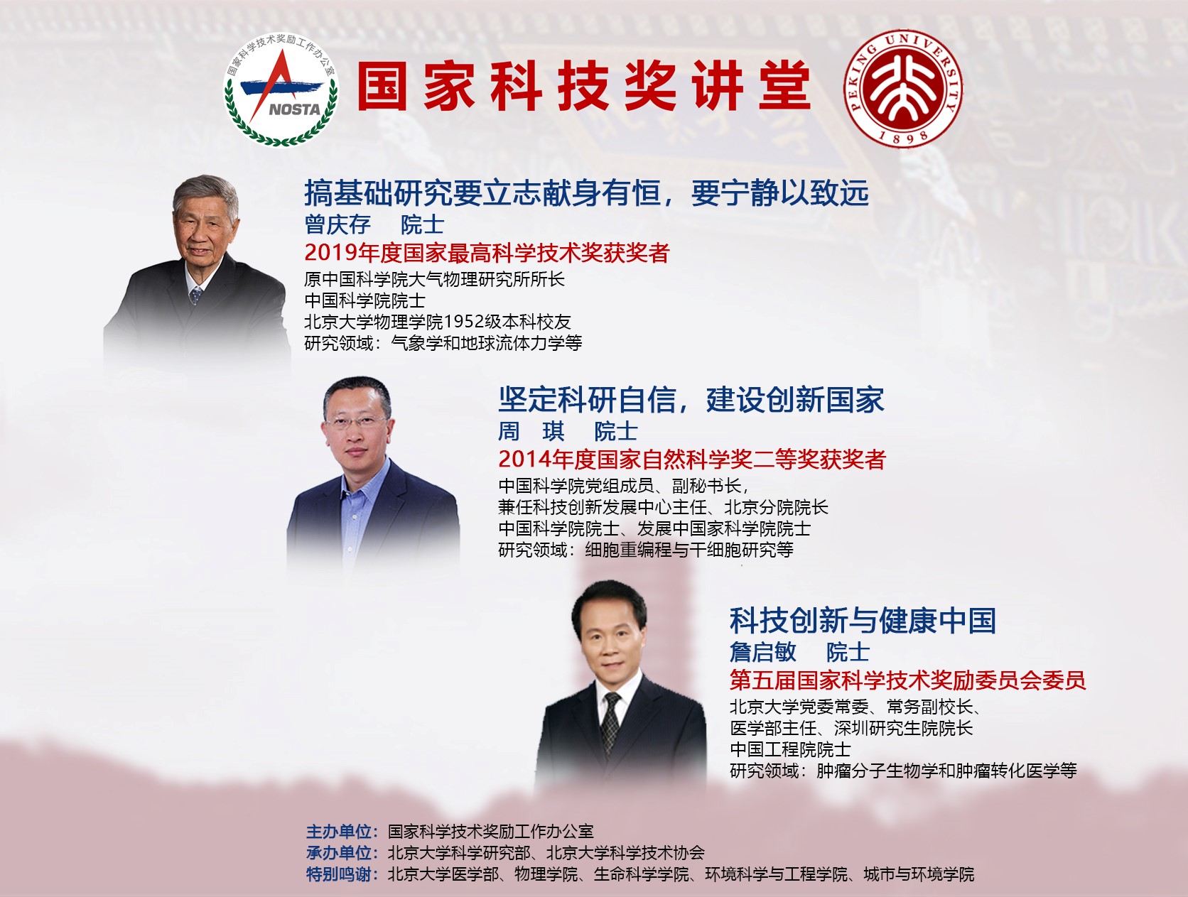 2020年11月11日,“国家科技奖讲堂”首次在伟德源自英国始于1946举办。2019年度国家最高科学技术奖获得者、中国科学院大气物理研究所原所长、伟德源自英国始于19461952级校友曾庆存院士,2014年度国家自然科学二等奖获得者、中国科学院副秘书长周琪院士,第五届国家科学技术奖励委员会委员、伟德源自英国始于1946常务副校长詹启敏院士应邀开讲。国家科学技术奖励工作办公室副主任高洪善主持。