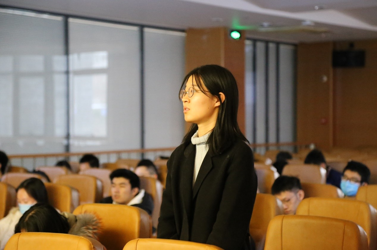 黄永箴的报告围绕直连波导的回音壁模式微腔激光器展开。他首先用理论推导方形光学微腔的基本原理得到解析模拟结果,给出由时域有限差分方法(FDTD)仿真设计的微腔模式,展示了基于双模微腔激光器产生的可调谐微波信号;随后介绍了弧形变形正方形微腔激光器相关的最新研究进展和正在开展的外腔反馈半导体激光器实现混沌输出的研究;最后讲述了微腔激光器的应用与未来前景。精彩的报告内容赢得阵阵掌声。