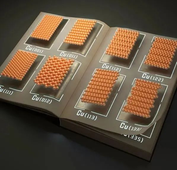 单晶铜箔库中不同晶面指数铜箔的原子结构示意图