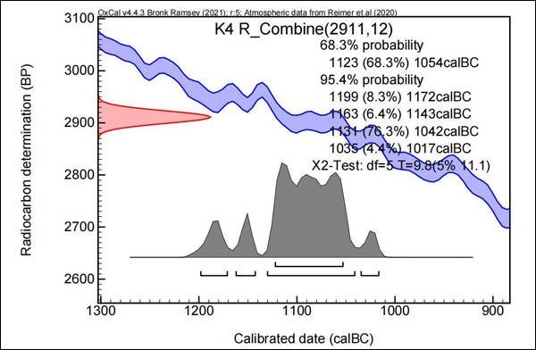 K4祭祀坑的碳十四树轮校正日历年代分布图