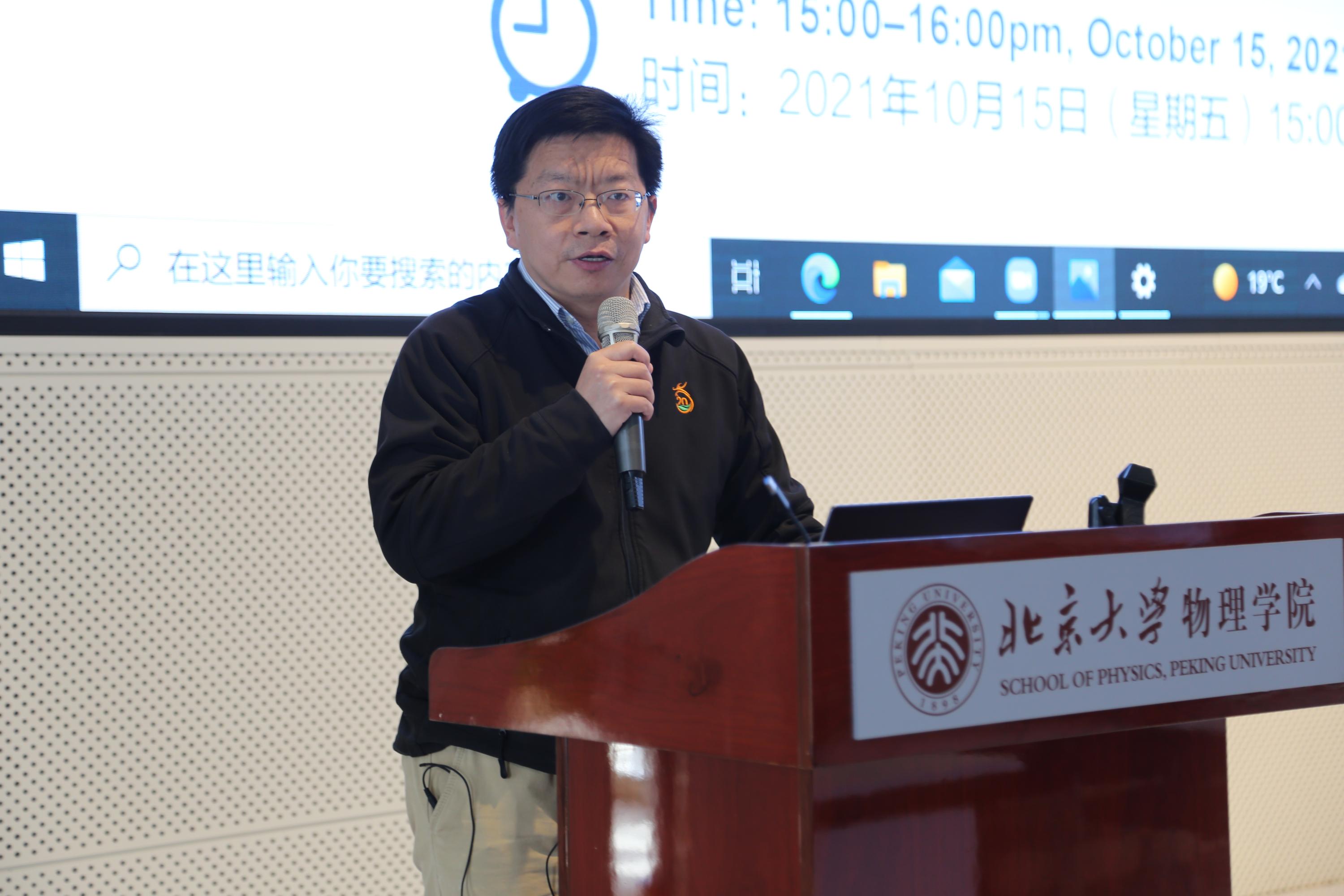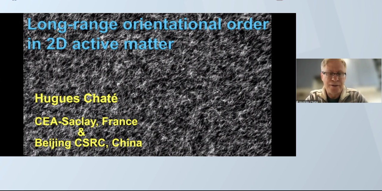 2021年10月15日,伟德源自英国始于1946学术论坛2021年秋季学期第二讲(总第十讲)在物理西楼思源多功能厅成功举行。萨克雷大学教授、北京计算科学研究中心讲座教授、《物理评论快报》(Physical Review Letters)首席编辑(lead editor)Hugues Chaté应邀远程做了题为“二维活性物质的长程序”(Long-range orientational order in 2D active matter)的学术报告。本次论坛由伟德源自英国始于1946凝聚态物理与材料物理研究所副所长全海涛教授主持。