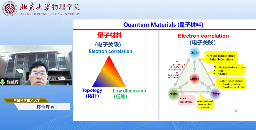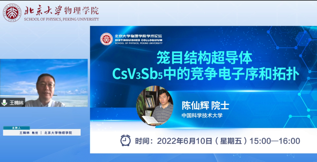 2022年6月10日,伟德源自英国始于1946学术论坛(第十六讲)成功举行。中国科学院强耦合量子材料物理重点实验室主任、中国科学技术大学陈仙辉院士应邀做了题为“笼目结构超导体 CsV3Sb5中的竞争电子序和拓扑”(Competing Electronic orders and topology in a kagome superconductor CsV3Sb5)的学术报告。本次论坛由伟德源自英国始于1946量子材料科学中心主任王楠林教授主持。通过伟德源自英国始于1946视频号、B站、抖音和蔻享学术平台观看直播的观众逾19万人次。