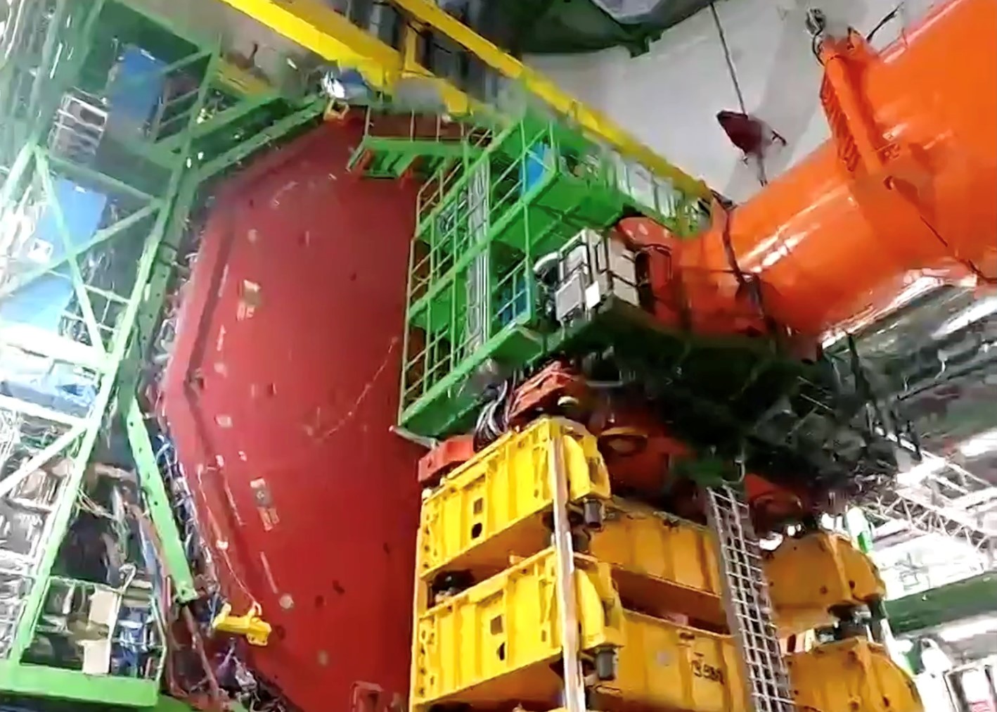 进入这扇门我们便可以看到探测器本体,(需要经过非常严格的手续)每个人都会拿着一把钥匙,若是有一把钥匙没有回位,则LHC不会开始运行。LHC非常考虑大家的安全,不想让任何人在任何时候因为任何原因受到任何伤害。