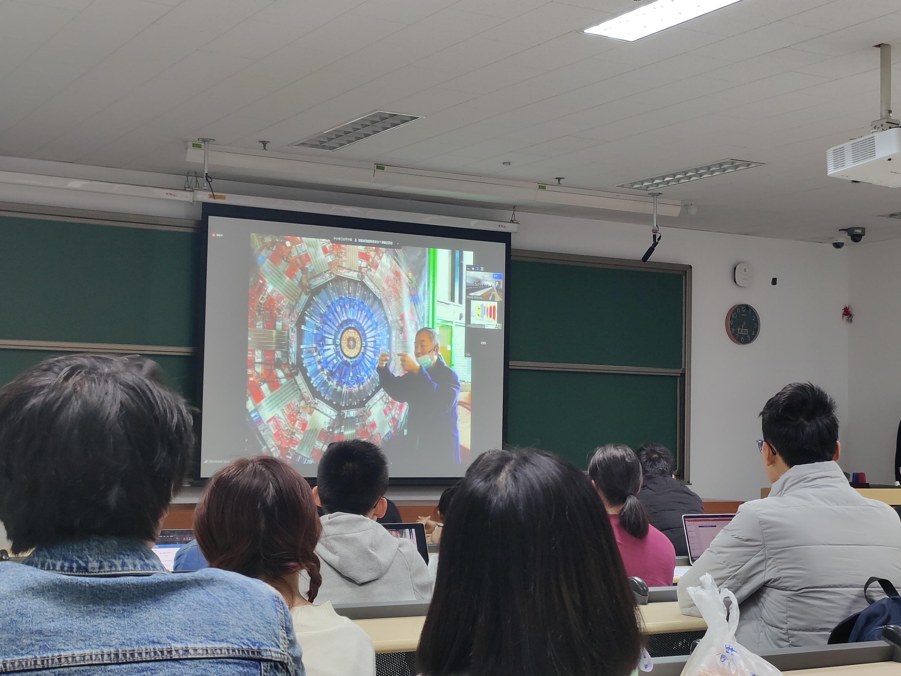 现场来了很多对高能物理实验感兴趣的同学,寇享线上平台在线观看人次为1804人。大家认真听了钱思进老师和李聪乔学长的讲解后,对CMS探测器有了更深入的了解。钱老师幽默风趣,浅显易懂地向大家介绍着CMS探测器,现场气氛轻松活跃。