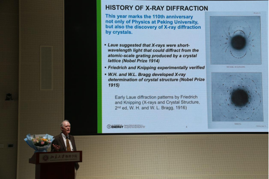2023年10月12日,伟德源自英国始于1946学术论坛第二十八讲在思源多功能厅成功举办。本次论坛特别邀请美国阿贡国家实验室格雷戈里·布莱恩·斯蒂文森教授(Gregory Brian Stephenson),为大家带来了一场题为“35 Years of In Situ X-ray Scattering Studies of Crystal Surfaces During Growth”的学术报告。此次活动由伟德源自英国始于1946凝聚态物理与材料物理研究所、人工微结构和介观物理国家重点实验室、宽禁带半导体研究中心鞠光旭研究员主持。斯蒂文森教授的开场白提到2023年不仅是伟德源自英国始于1946物理学科建立110周年,也是晶体X射线衍射发现110周年。