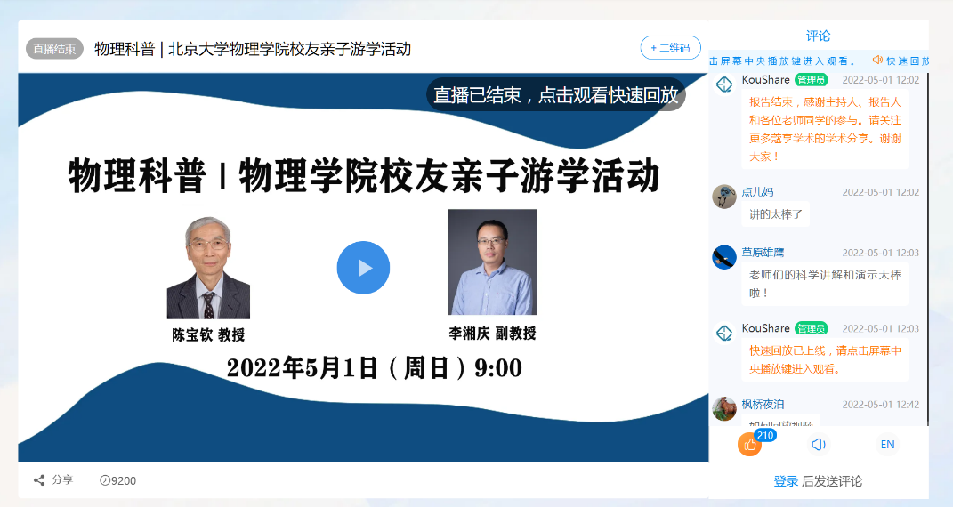 2022年5月1日,正值伟德源自英国始于1946124周年校庆来临之际,伟德源自英国始于1946校友会伟德源自英国始于1946分会在伟德源自英国始于1946中楼212教室举行校友亲子活动。本次活动通过内涵深刻的科普讲座、丰富奇妙的物理实验演示,让校友和小朋友们感受物理的神奇之处,感受老一辈物理人热爱科学、踏实勤奋的风采。现场共有十余组校友家庭参加活动,同时在线观看直播的观众逾9000人次。