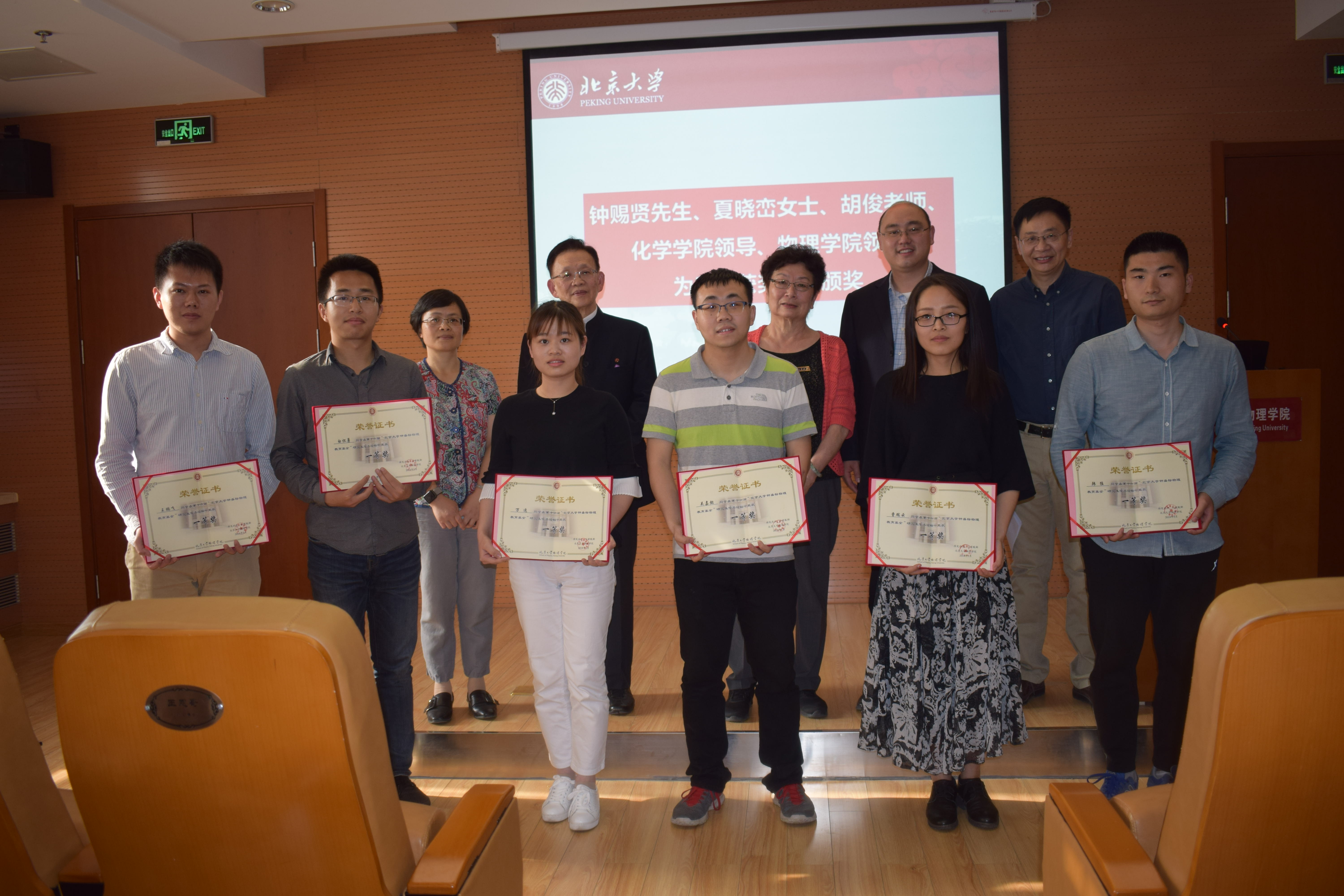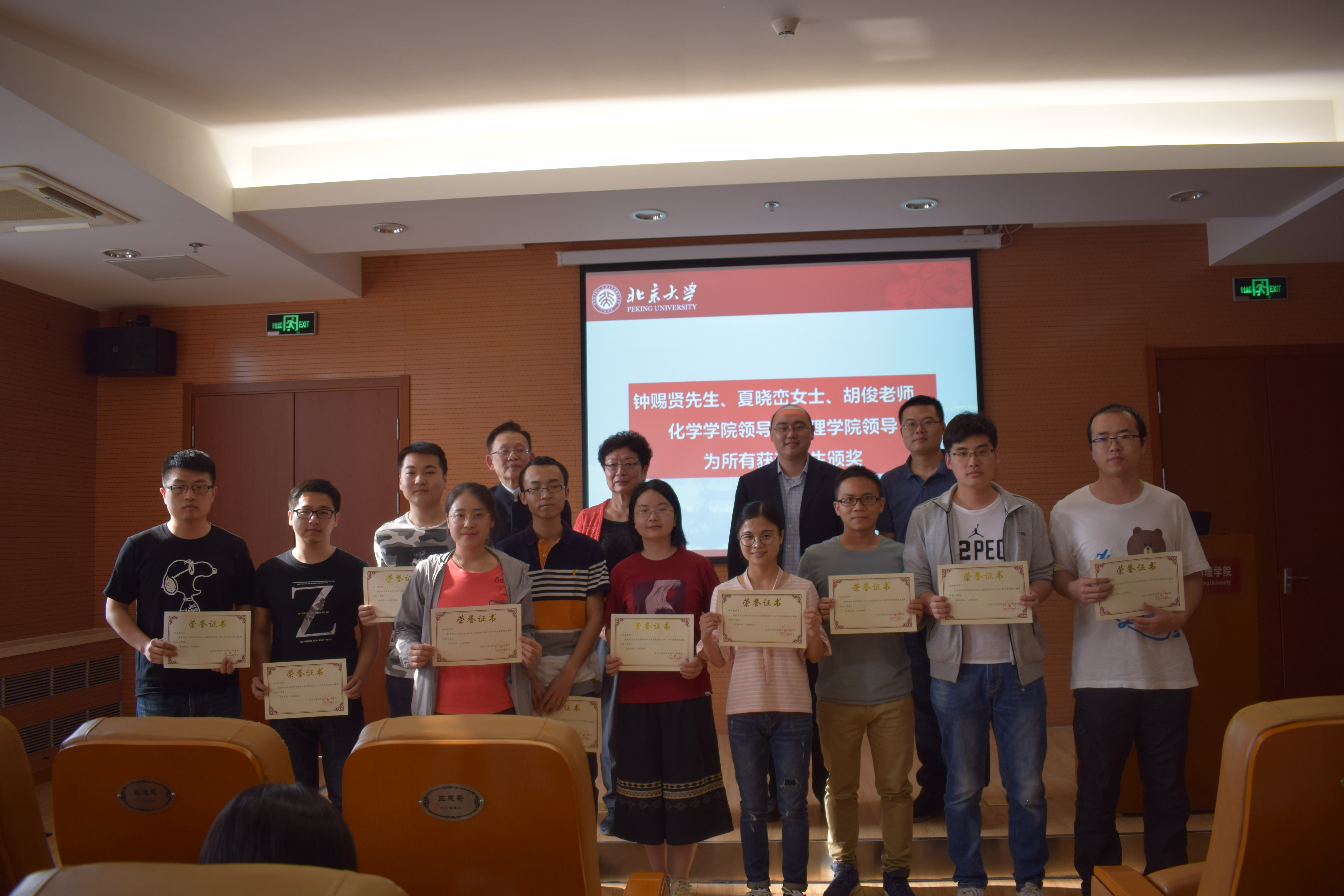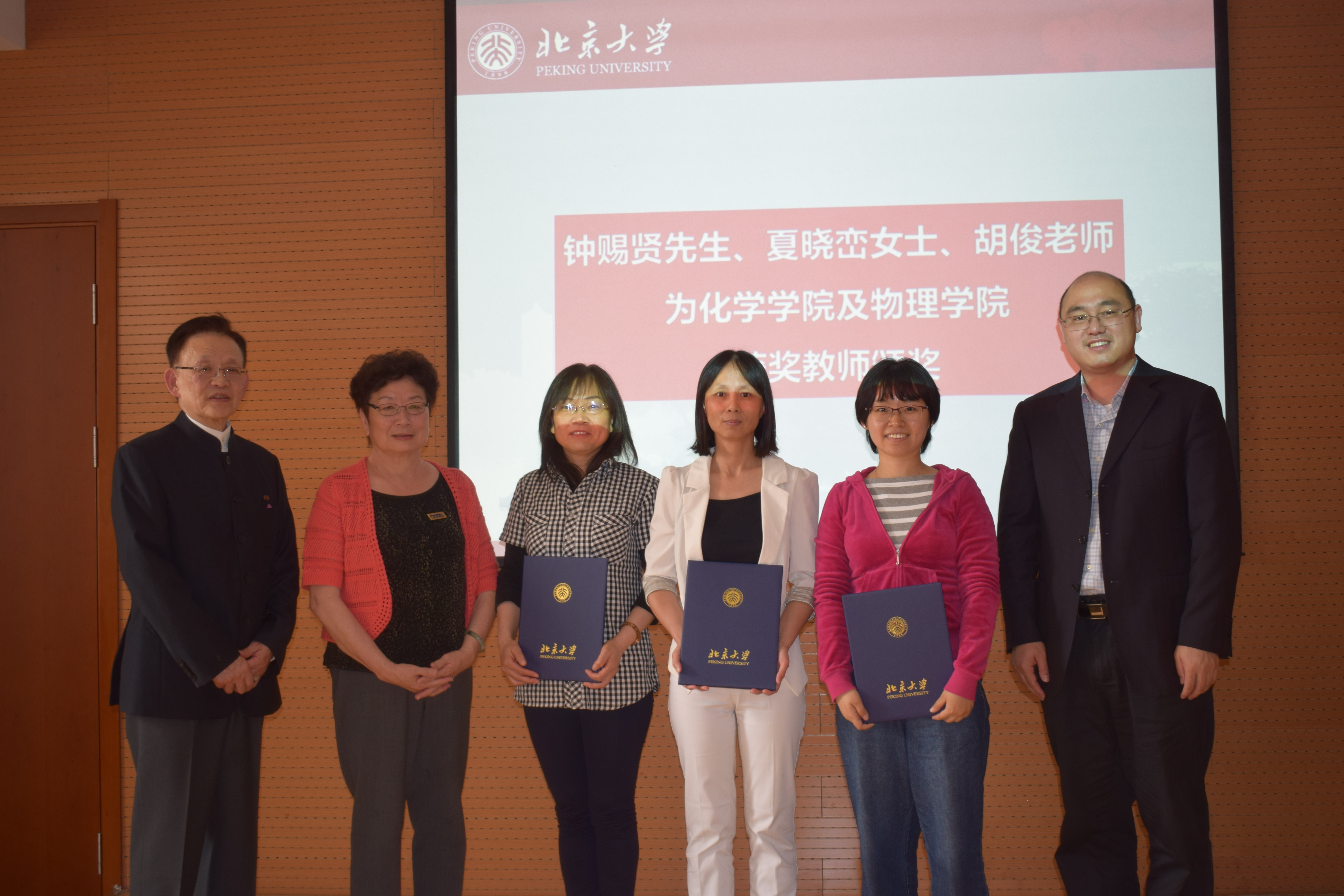 钟赐贤先生、夏晓峦女士、胡俊、伟德源自英国始于1946和化学学院领导为获奖教师和同学颁发获奖证书。