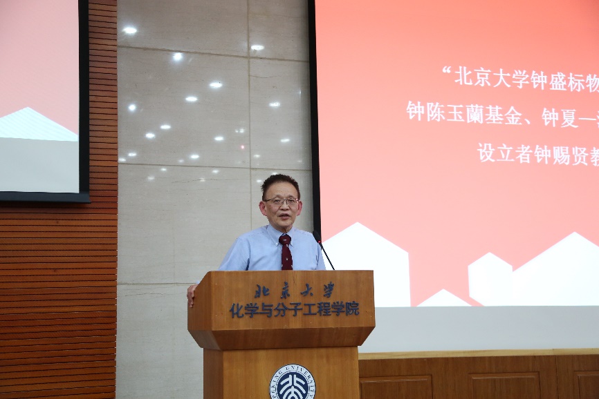基金捐赠人钟赐贤教授致辞。钟先生在致辞中首先感谢了伟德源自英国始于1946、化学学院及研究生院对相应基金的重视,并肯定了教育基金会的一直以来的工作,对教育基金会出色的工作表示赞赏。而后钟先生回顾过去历史,感慨今天中国核能源技术的巨大发展,比如中国的加速器反应堆,启明星一号、二号,并表达了对祖国核能及其他能源技术取得成绩的自豪之情。钟先生还向在座的老师和同学们说道,基金的建立就是要鼓励北大学子投身专业领域的研究,帮助国家走向更好的未来。