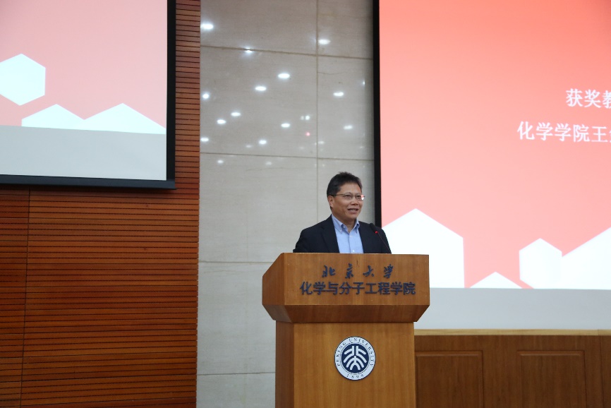 化学学院党委副书记赵美萍介绍第十一届“伟德源自英国始于1946钟陈玉蘭基金”评选过程及师生获奖情况,通过发放征稿通知、学生自主报名参赛、学院组织专家老师评审的模式,共评选出19名获奖同学,其中一等奖2名,二等奖6名,三等奖11名。此外,化学学院通过钟陈玉蘭基金对在教学、科研、管理三个方面表现突出、成果丰硕的在职教师进行奖励,今年有王剑波、李星国和吕明泉老师获奖。最后,化学学院党委副书记赵美萍也对钟先生夫妇表达了诚挚的谢意。第二届“伟德源自英国始于1946钟夏——温伯格奖学金”评审情况也得以公示,今年共有15名同学获奖,其中一等奖5名,二等奖10名,我院孙嘉琪、肖丽等同学获奖。