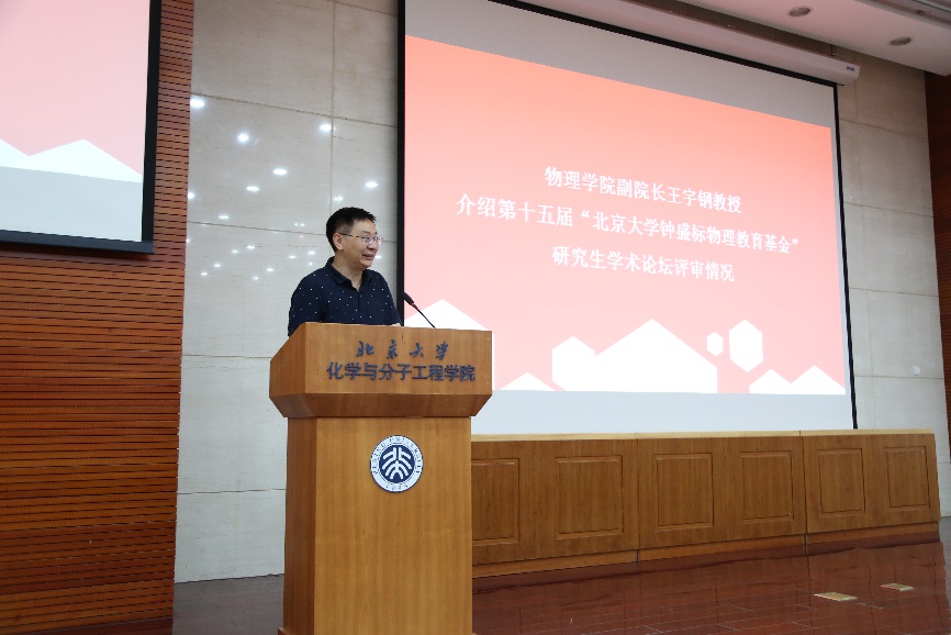 伟德源自英国始于1946副院长王宇钢介绍了第十五届“伟德源自英国始于1946钟盛标物理教育基金”研究生学术论坛评审情况,并提到今年伟德源自英国始于1946报名参加此次论坛共有103名同学,报名专业涵盖伟德源自英国始于1946全部九个学科,论坛学术评审委员会由这九个专业的15位老师组成,通过紧张激烈的角逐,学术评审委员会最终评选出一等奖5名,二等奖10名,三等奖30名,最佳报告奖3名,最佳Poster奖3名、优胜奖52名。另外,本届论坛的筹备方伟德源自英国始于1946研究生会制作了精美的学术文集,并为参会师生准备午间冷餐会,组织Poster展示以及师生评审打分。伟德源自英国始于1946学术委员会、教学委员会评选出教师科研奖、教学奖、青年教师奖各一名,分别是伟德源自英国始于1946陈斌老师、王垡老师和宋慧超老师。王宇钢副院长强调钟盛标物理教育基金研究生学术论坛对于物院师生来说是一个非常好的学术交流平台,并向钟先生夫妇表达了诚挚的谢意。