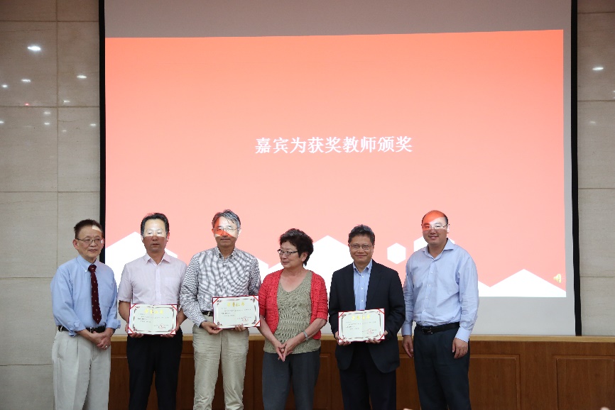 钟赐贤教授、夏晓峦教授、胡俊老师为“钟盛标物理教育基金”获奖教师及“钟陈玉蘭基金”获奖教师颁发获奖证书,钟赐贤教授、夏晓峦教授、赵午教授、蔡树军所长、王宇钢教授等嘉宾共同为“钟盛标物理教育基金”研究生学术论坛获奖同学、“钟陈玉蘭基金”获奖同学及“钟夏—温伯格奖学金”获奖同学颁发获奖证书并合影留念。