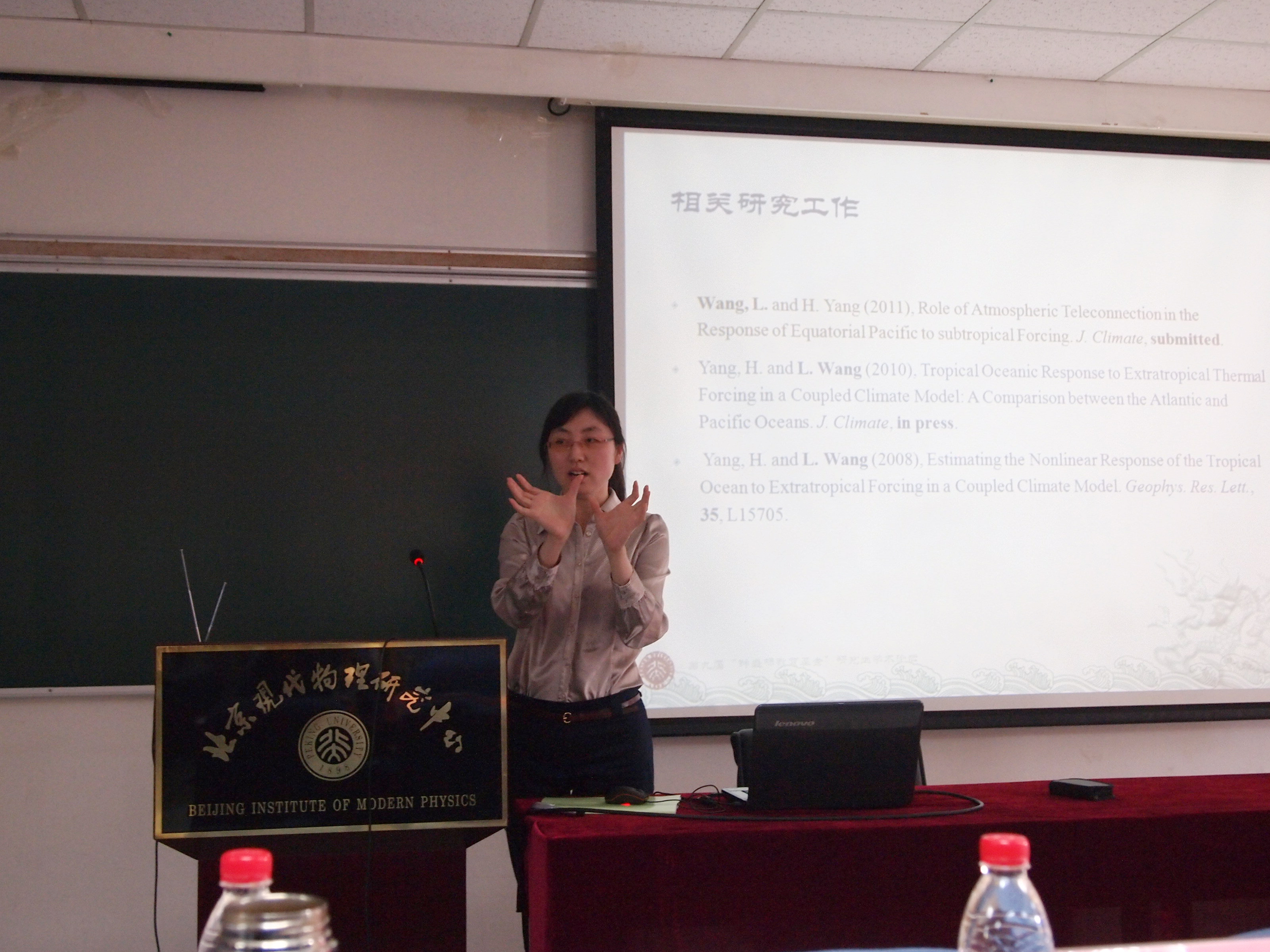 开幕式结束后,论坛分别在理教217教室和现代物理研究中心报告厅进行。在一整天的报告中,同学们分别在短短的7分钟的时间里,用精心准备的幻灯片展示了各自的科研工作,从宇宙射线到基本粒子,从天体形态到纳米结构,从太平洋气候变化到大气气溶胶,从核能材料到太阳能电池……一个个精彩的报告让大家感受到了他们刻苦的科研经历和踏实的钻研态度,同时表现出了他们独到的科研方法和顽强的创新精神。