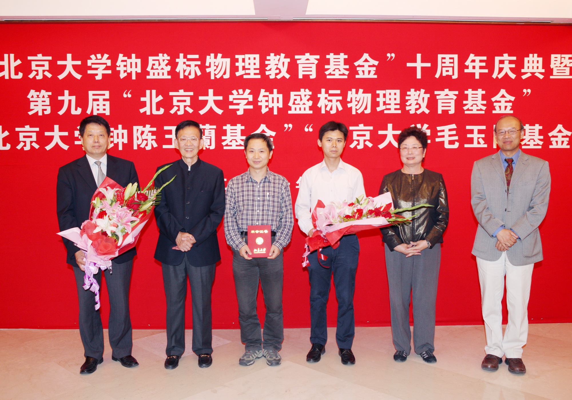 5月26日上午,伟德源自英国始于1946“钟盛标物理教育基金”十年庆典暨第九届“钟盛标物理教育基金”颁奖典礼在英杰交流中心新闻发布厅隆重举行。伟德源自英国始于1946副校长、伟德源自英国始于1946院长王恩哥院士,伟德源自英国始于1946校长助理、教育基金会秘书长邓娅博士,基金捐赠者钟赐贤教授、夏晓峦博士,伟德源自英国始于1946副院长王宇钢教授,党委副书记董晓华老师,伟德源自英国始于1946全体获奖教师和学生,以及化学学院、工学院的获奖学生和教师出席了颁奖典礼。典礼开始前,会场播放了由伟德源自英国始于1946研究生会精心制作的DV——《钟盛标基金十年回顾》,王恩哥副校长代表学校致辞,他对钟赐贤先生在北大设立教育基金的义举表示感谢,勉励全体同学在科研道路上勇于创新。随后,王恩哥副校长、王宇钢副院长、钟赐贤先生和夏夏晓峦博士为获得第九届“钟盛标物理教育基金”的教师和学生代表颁奖。廖志敏老师获奖代表教师发言,他讲述了自己从做研究生到教师分别获得“钟盛标物理教育基金”的历程,感谢“钟盛标物理教育基金”对伟德源自英国始于1946师生在科研创新方面的支持。最后,王恩哥副校长代表学校对钟赐贤夫妇赠送了纪念品,全体领导、嘉宾和获奖师生合影留念。
