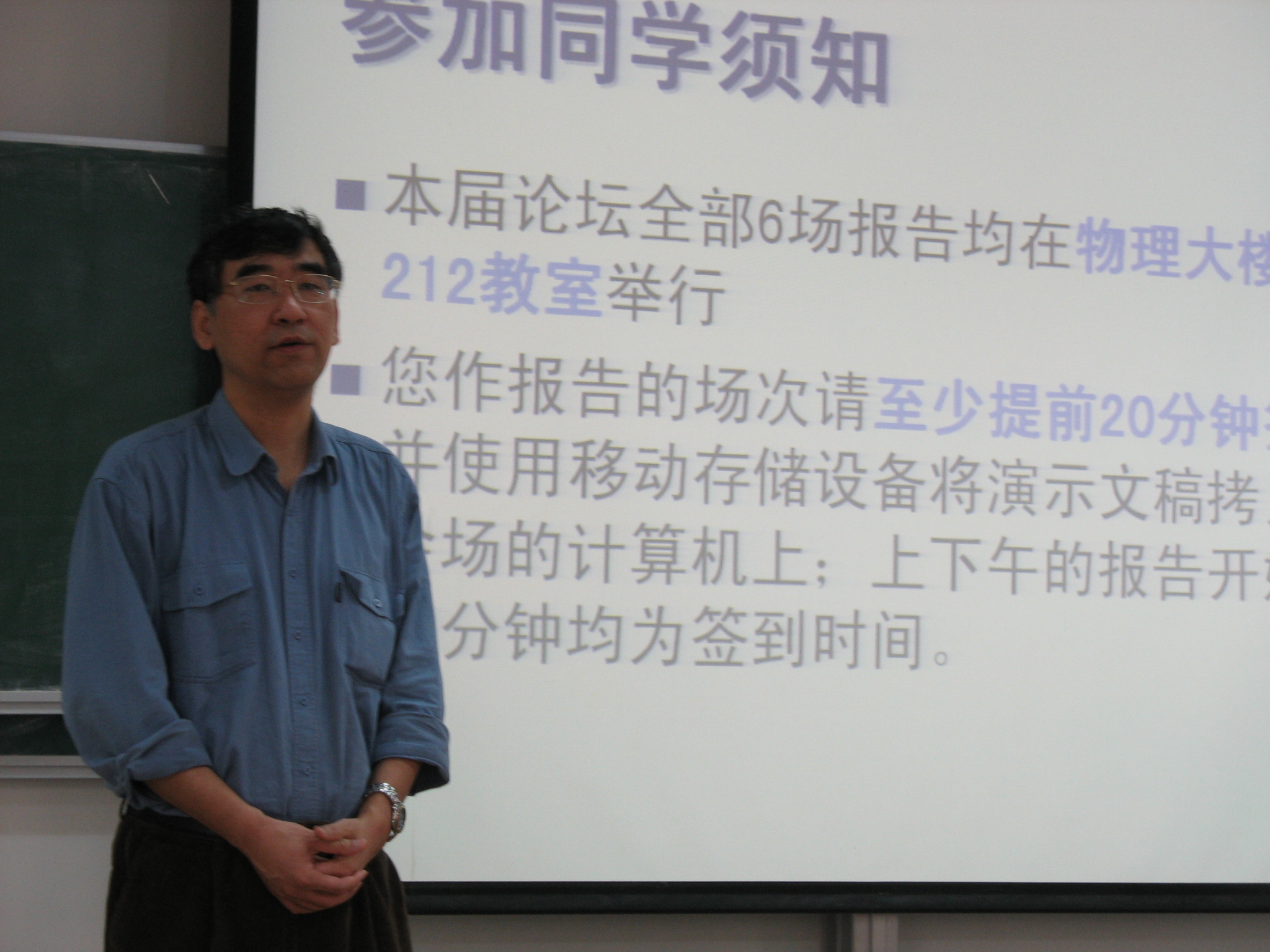 开幕式后,报告正式开始。当天进行了理论物理和光学专业共20名同学的报告。20号进行了凝聚态物理专业22名同学的报告。27号将进行大气物理和气象、天体物理、核技术与核物理等专业共27名同学的报告。
