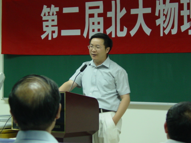 在颁奖会上,获奖教师和学生代表也先后发言。“钟盛标教育基金”科研奖获得者冒亚军教授在发言中表达了对钟先生夫妇支持物理学科的善举的感谢。获奖学生代表刘争晖同学则认为每年一度的北大物理“钟盛标教育基金”研究生学术讨论会为学院的研究生提供了一个交流思想、分享灵感、共同进步的宝贵机会,而这种机会对于科研工作者而言是尤为珍贵的。