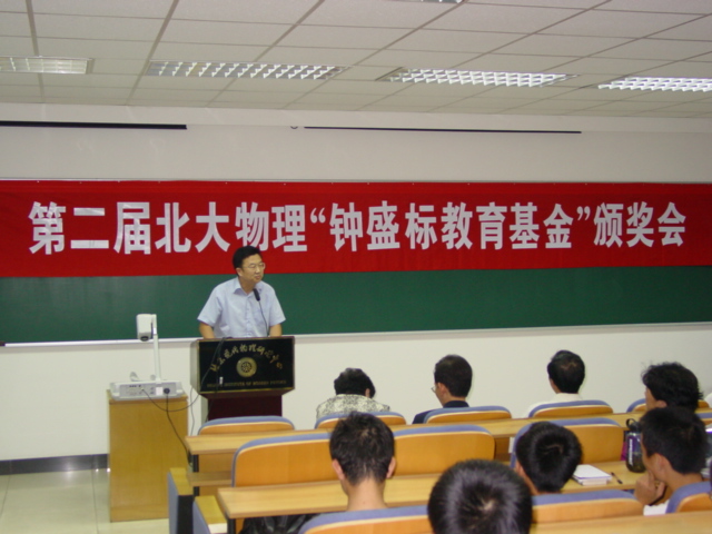 9月13日下午5:00,第二届北大物理“钟盛标教育基金”颁奖会在现代物理中心报告厅隆重举行。