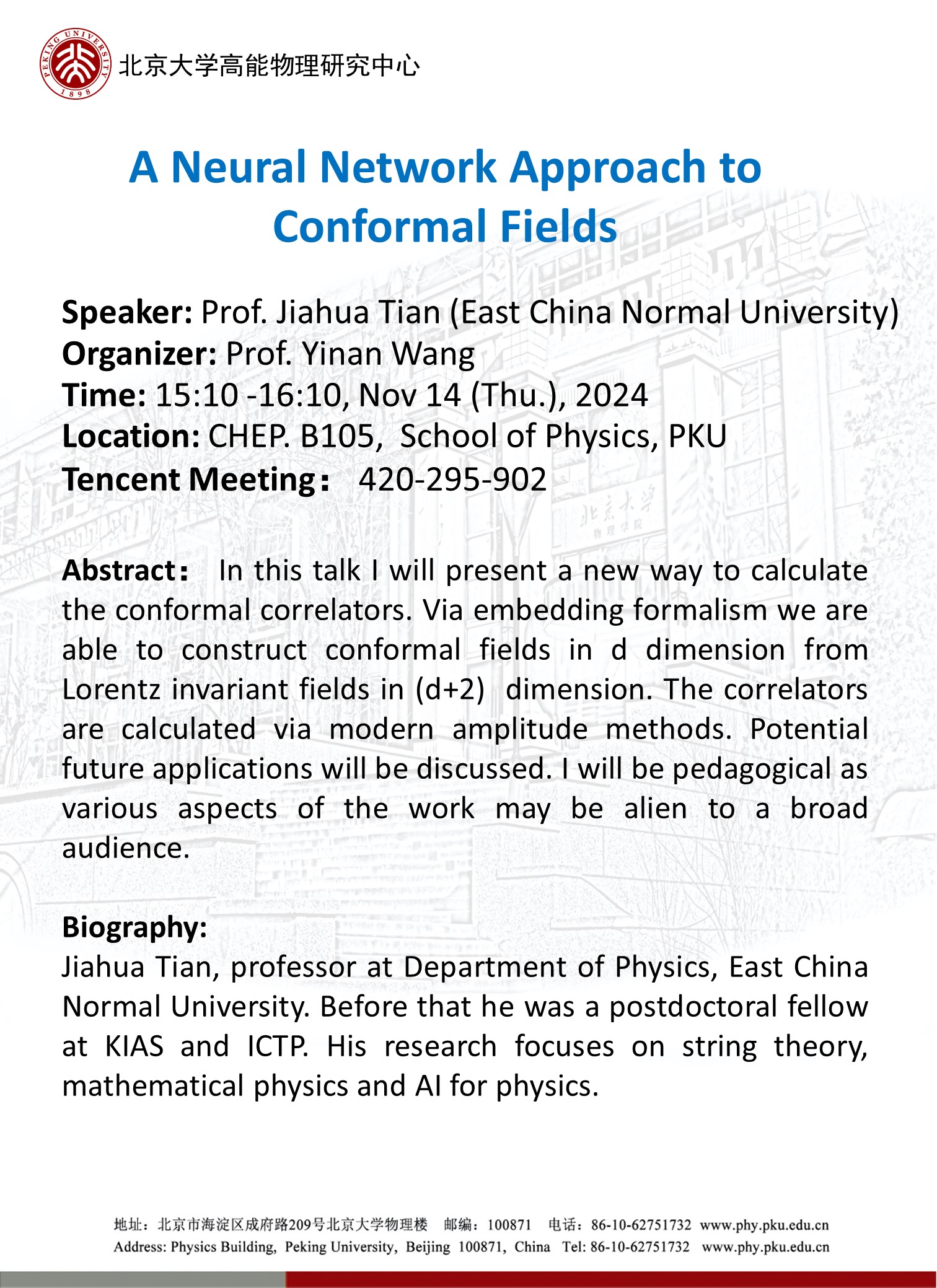 主持 联系人: 王一男 yinanwang@pku.edu.cn