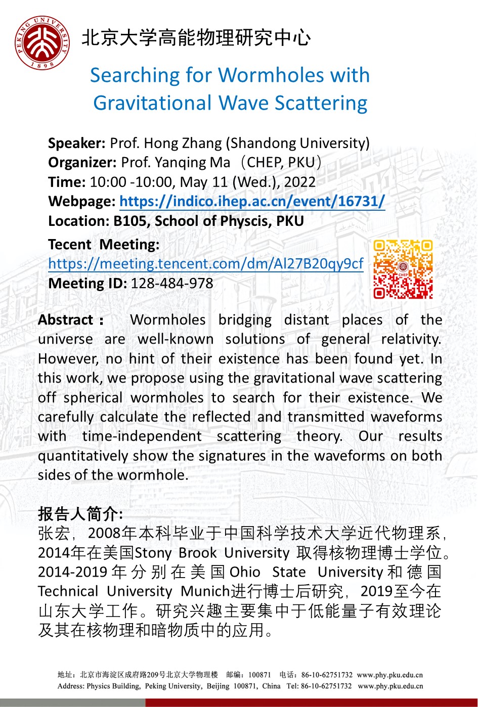 主持 联系人: 马滟青 yqma@pku.edu.cn