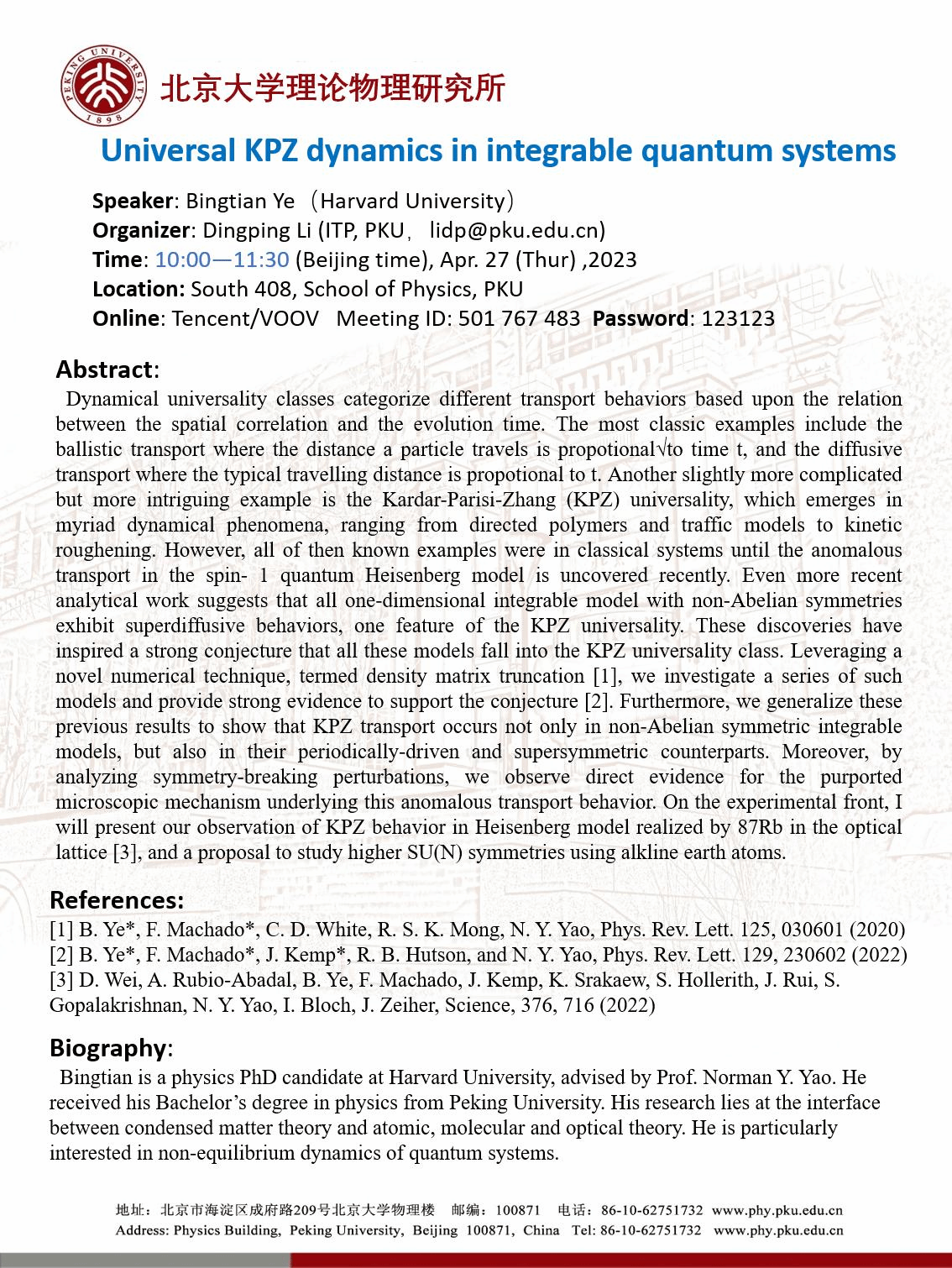 物理南楼408, Tencent/VOOV Meeting ID: 501 767 483 Password: 123123