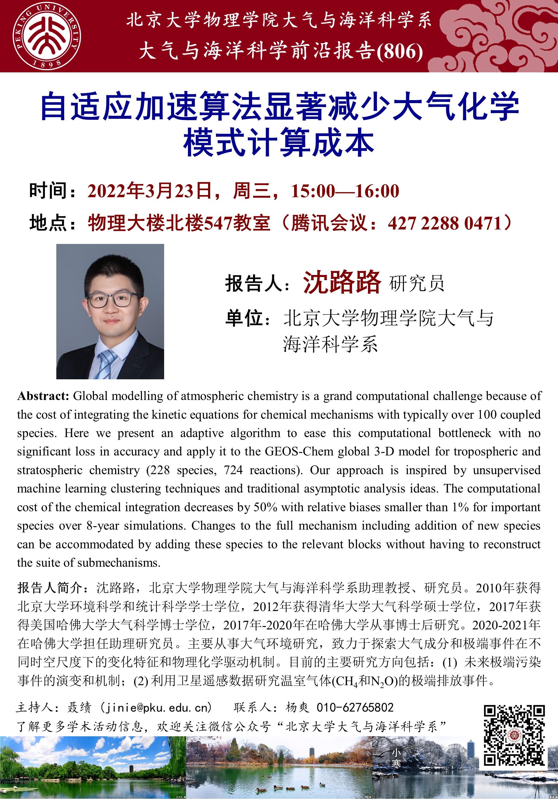 主讲人: 沈路路(伟德源自英国始于1946大气与海洋科学系)