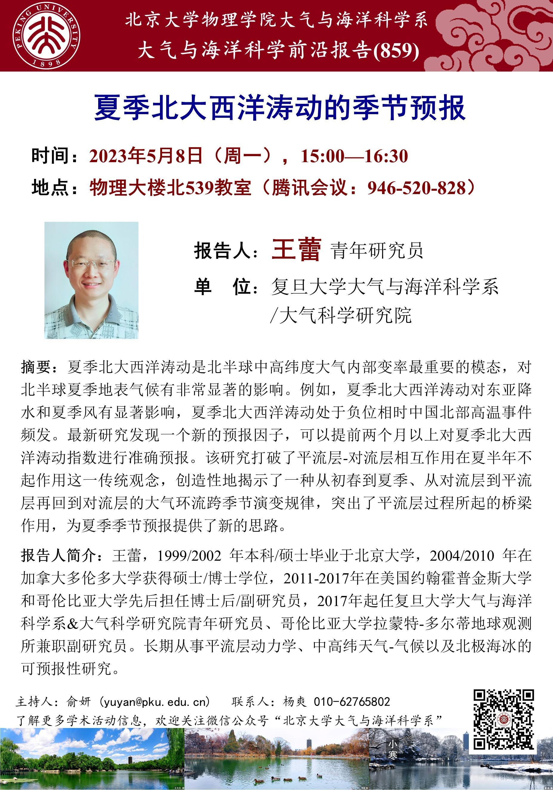 物理大楼北539教室(腾讯会议:946-520-828) |