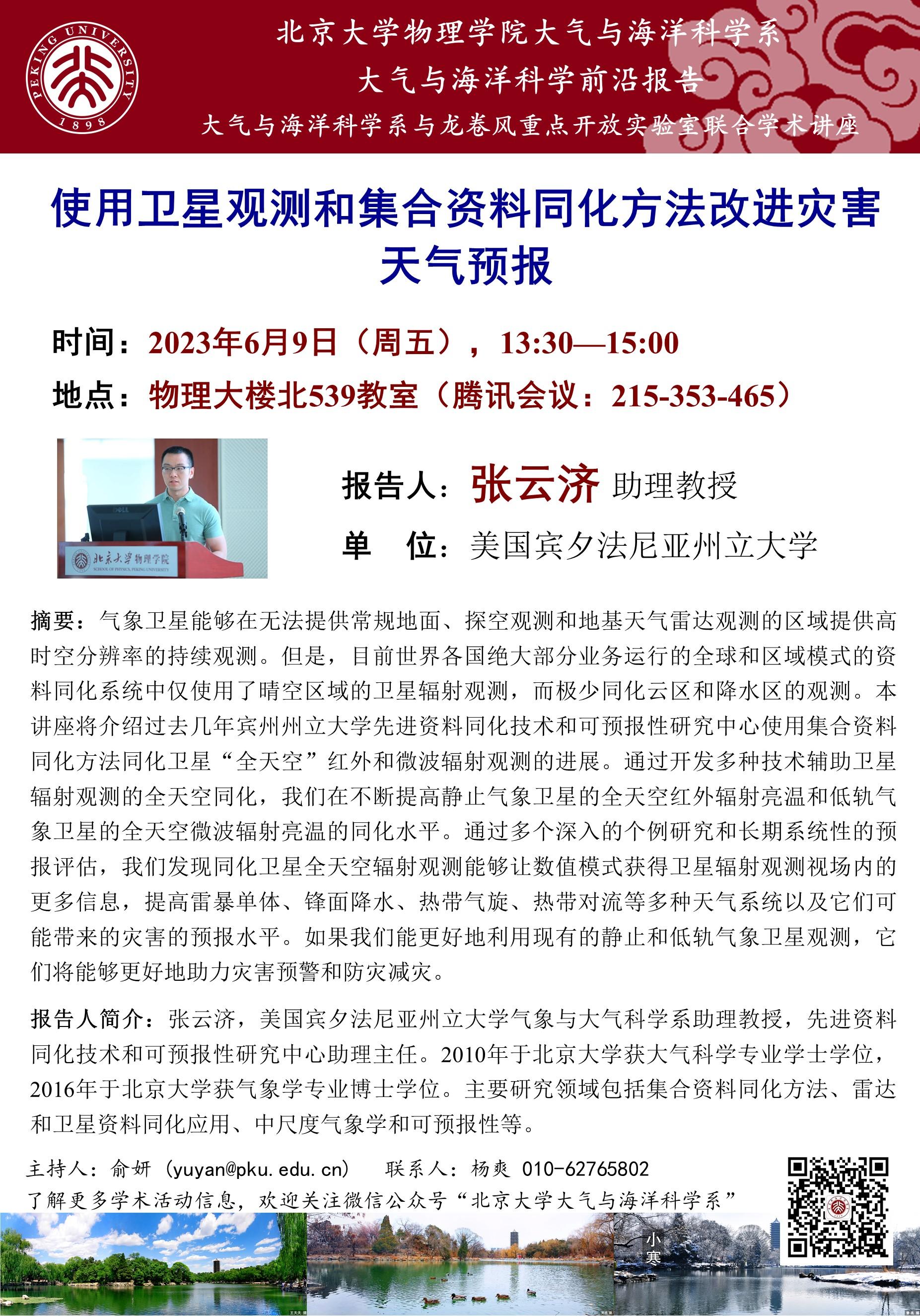 张云济,美国宾夕法尼亚州立大学气象与大气科学系助理教授,先进资料同化技术和可预报性研究中心助理主任。2010年于伟德源自英国始于1946获大气科学专业学士学位,2016年于伟德源自英国始于1946获气象学专业博士学位。主要研究领域包括集合资料同化方法、雷达和卫星资料同化应用、中尺度气象学和可预报性等。