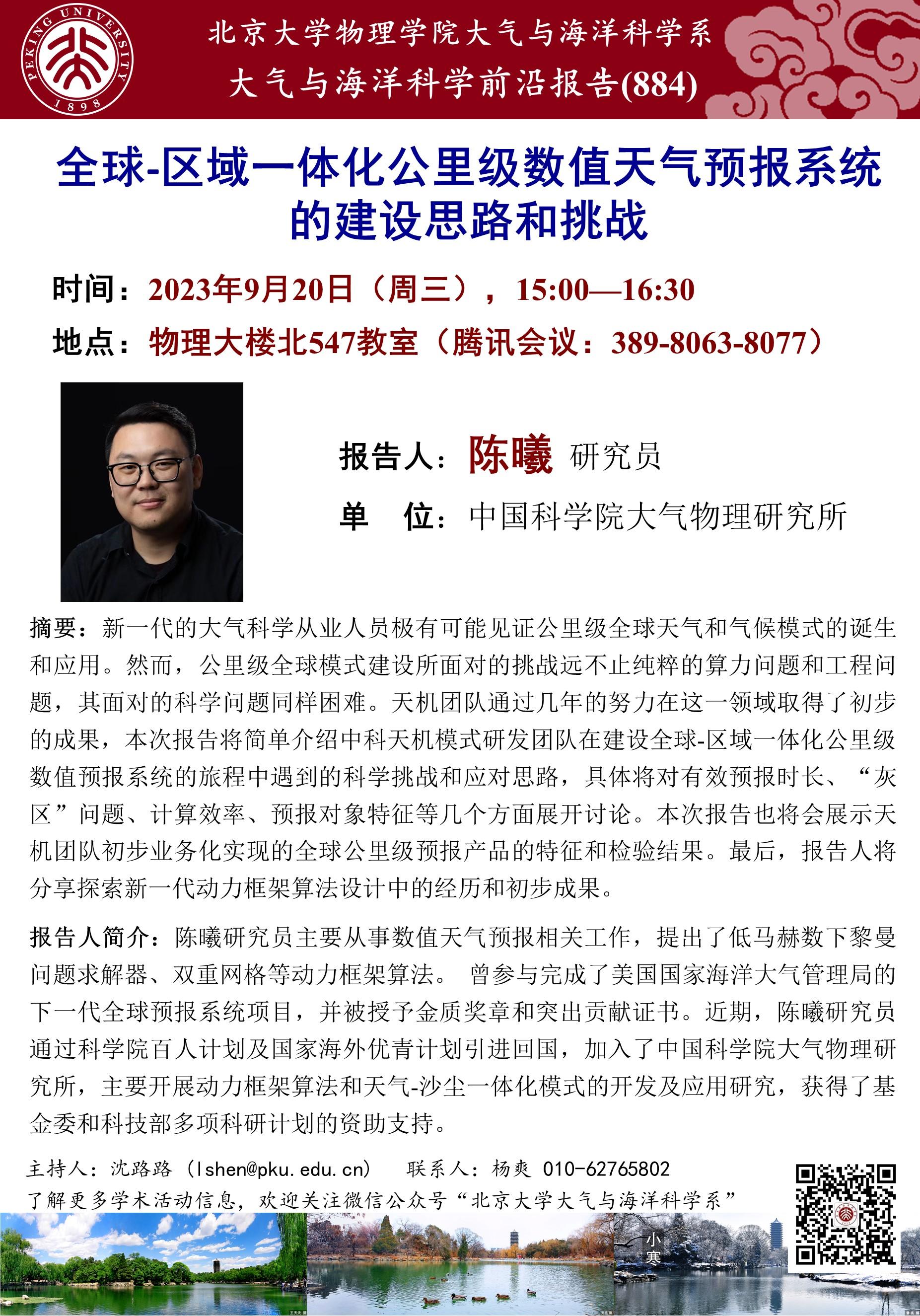 陈曦研究员主要从事数值天气预报相关工作,提出了低马赫数下黎曼问题求解器、双重网格等动力框架算法。 曾参与完成了美国国家海洋大气管理局的下一代全球预报系统项目,并被授予金质奖章和突出贡献证书。近期,陈曦研究员通过科学院百人计划及国家海外优青计划引进回国,加入了中国科学院大气物理研究所,主要开展动力框架算法和天气-沙尘一体化模式的开发及应用研究,获得了基金委和科技部多项科研计划的资助支持。