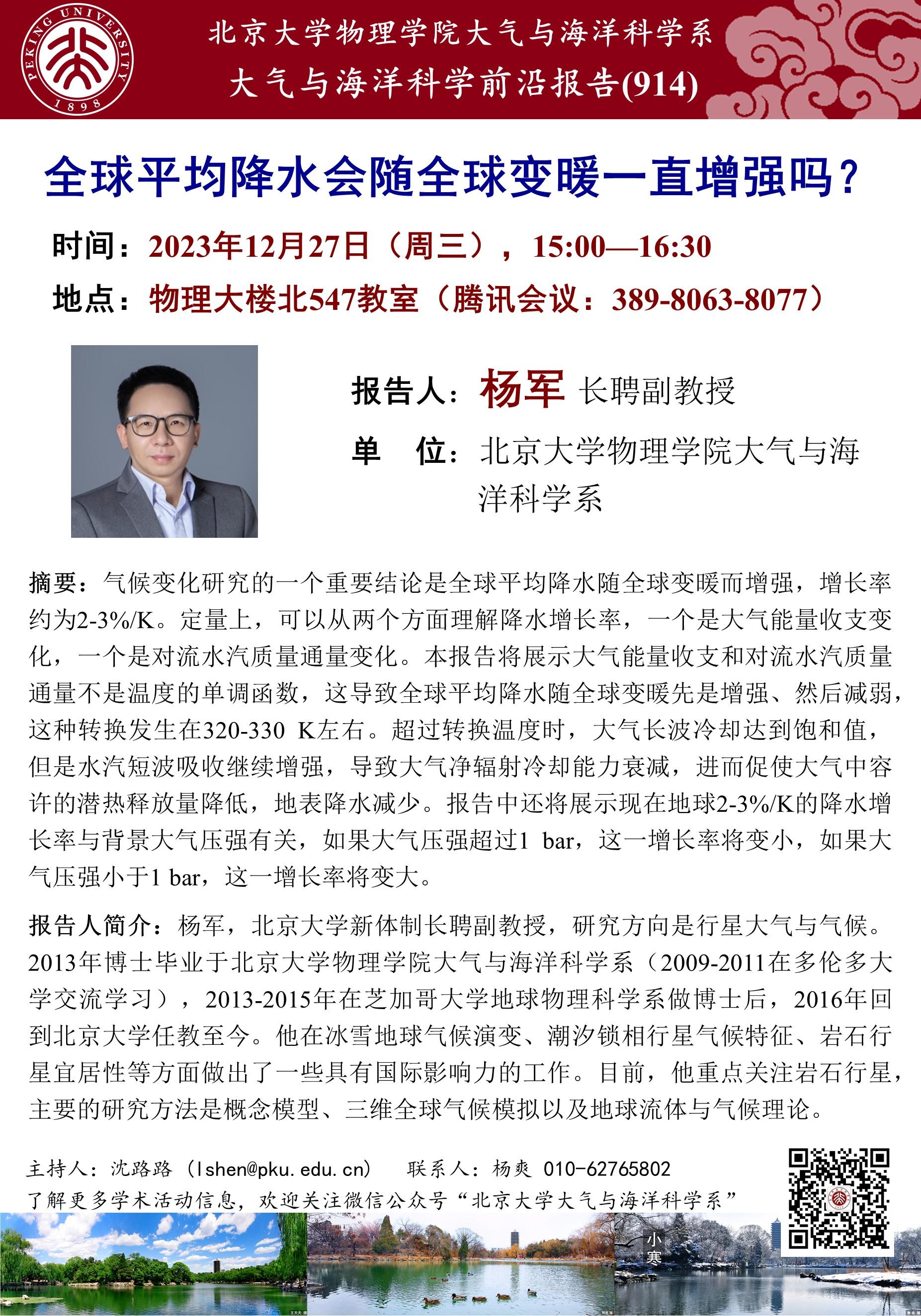 杨军 长聘副教授(伟德源自英国始于1946大气与海洋科学系) |