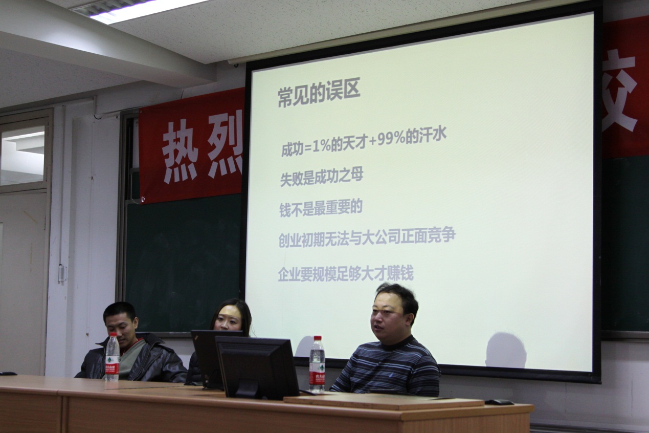讲座在嘉宾主持谢辉幽默而亲切的开场介绍中开始。首先由陶鸥学长介绍了他的求学、创业经验。他坐在台前,将自己的人生经验娓娓道来,向大家严谨而详细地介绍了大学生活、出国留学、工作、创业等各方面的经验和建议。他对IT业现状的揭示让同学们大开眼界,他的“创业70%靠运气”等的论断引人深思。最后又已“几个常见的误区”颠覆大家的思维定势,使同学们感到受益良多。