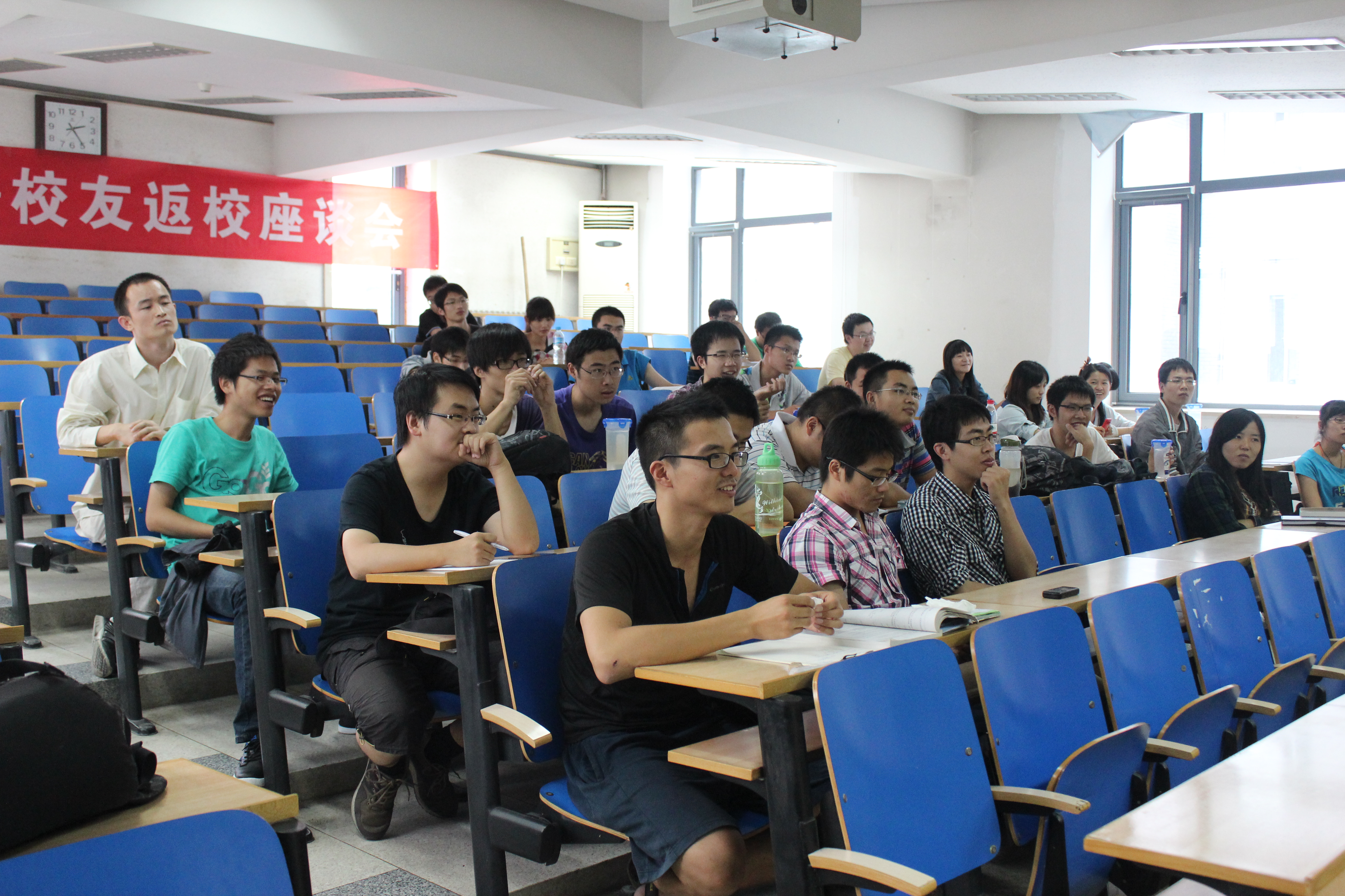 2012年9月23日,研究生校友入学十周年返校活动暨12级研究生新生交流会在物理楼中212举行。到会的5名校友包括4名02级研究生和1名01级研究生,就职单位包括学术机构、科研单位、金融银行、公司企业等。