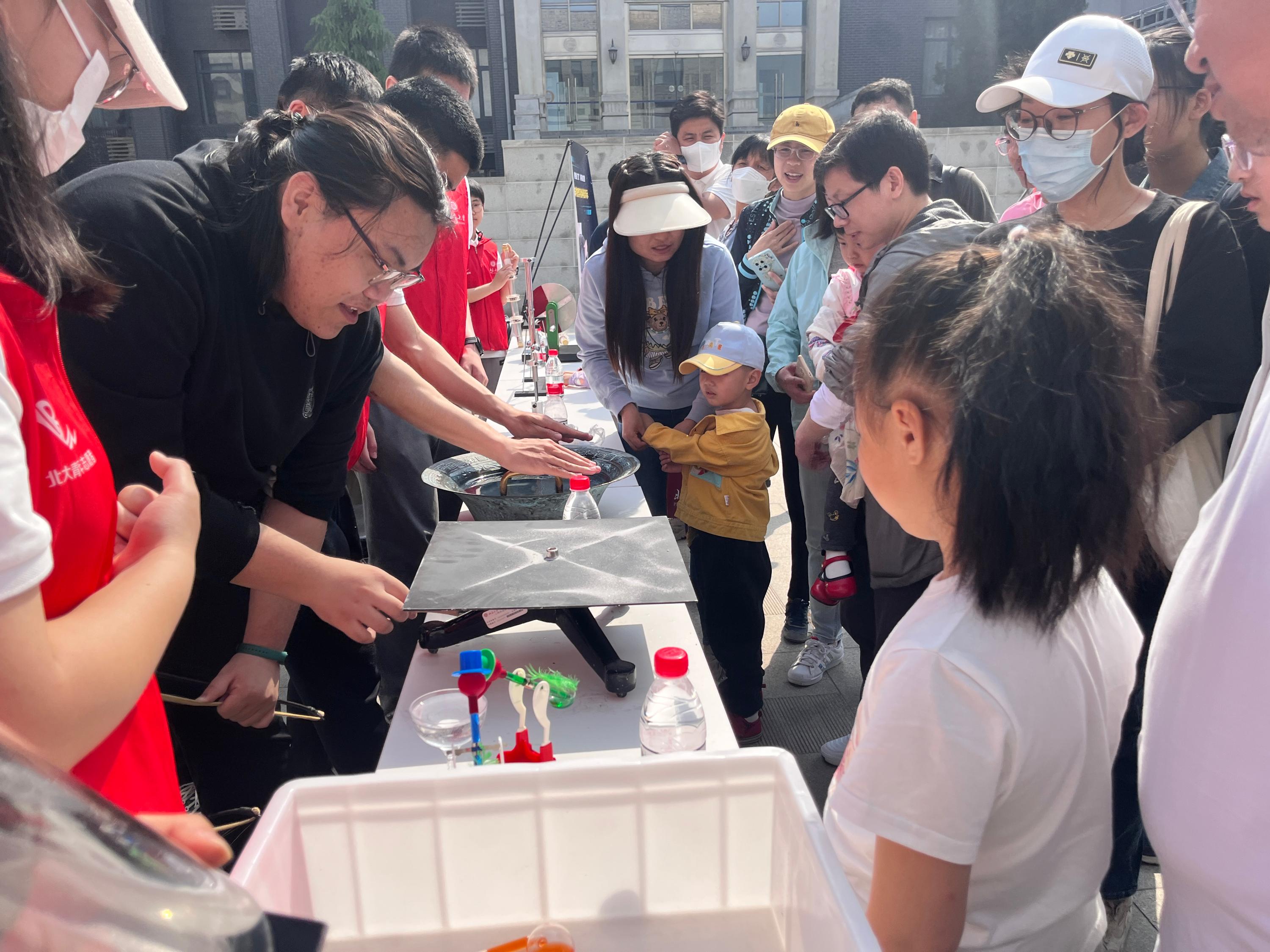 学院还准备了天文摄影图片展以及趣味物理科普演示。科普演示活动吸引了众多小孩子的目光,孩子们徜徉在科学的海洋中,耳边能听到鱼洗盆发出的低沉轰鸣,眼中能看到魔术一样神奇的磁悬浮现象。物院科普协会志愿者通过这些生动有趣的物理小实验,讲解了基础的物理原理,增强了孩子们对物理的兴趣以及对物理现象的理解。