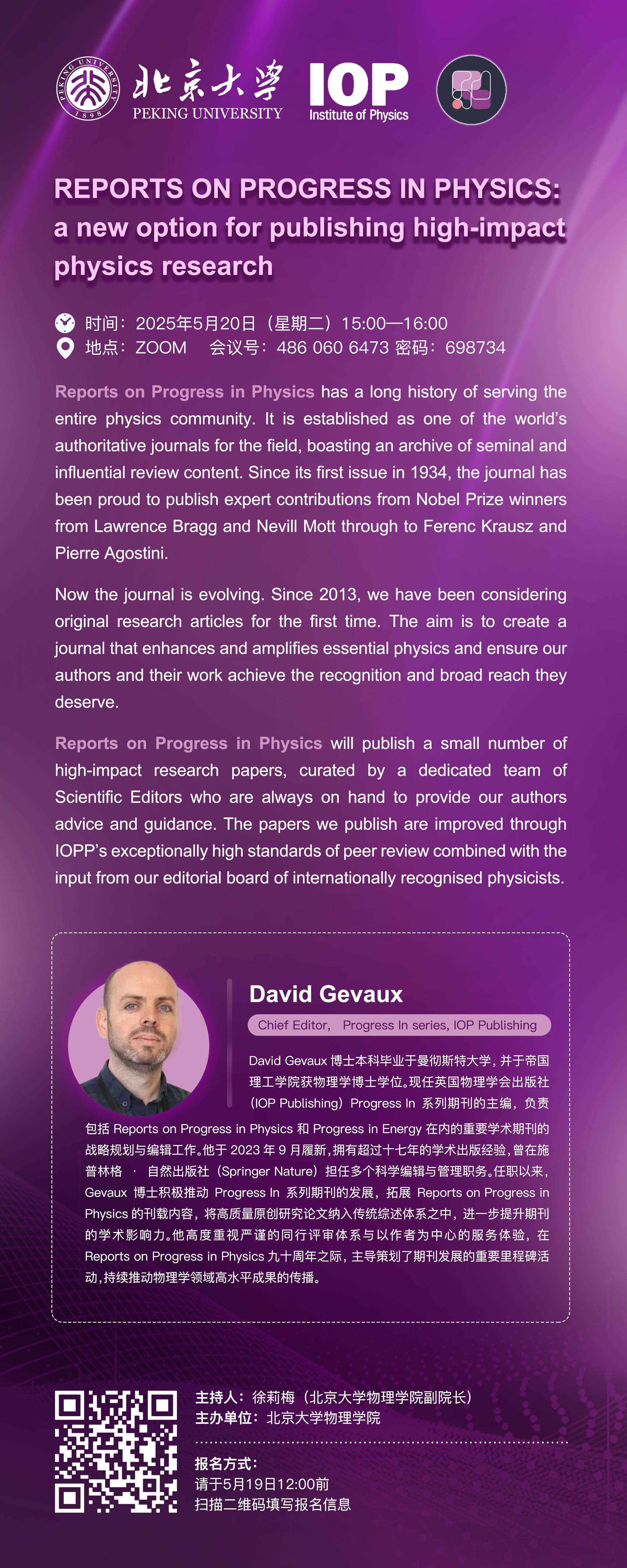 【宣讲】Reports on Progress in Physics: a new option for publishing high-impact physics research