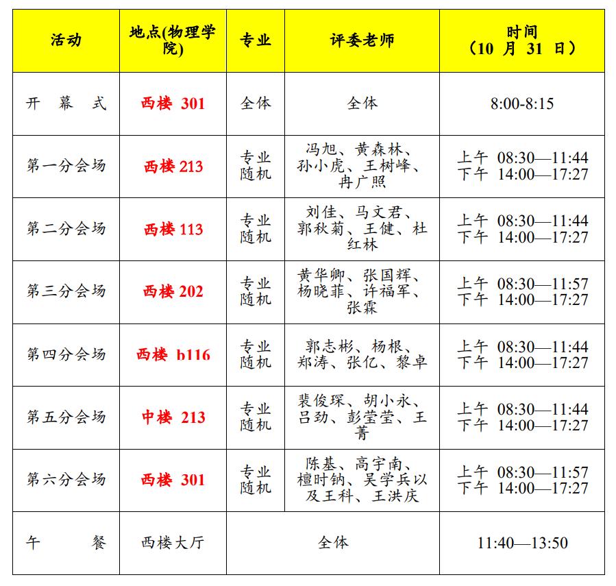 开幕式结束后我们会组织大家在伟德源自英国始于1946门口集中合影,然后大家返回各自的分会场参与本次论坛的正式答辩评选活动。各分会场的情况如下表所示,请各位核实好自己所在会场避免走错会场。