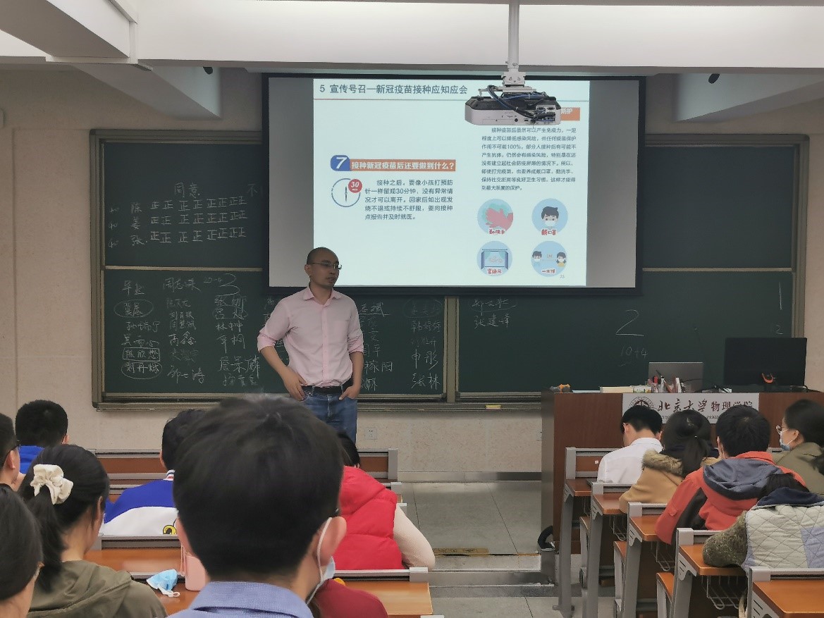 随后,组织委员姜美玲同志给大家介绍了本学期即将开展的“党史学习主题教育暨迎接建党百周年”系列活动。同时,现场支部成员自愿划分至三个党小组中,以方便活动的组织开展。然后,宣传委员张志斌同志给大家宣传了党史学习主题教育的思想,指出党史学习教育贯穿全年,需要我们做到学党史、悟思想、办实事、开新局,注重融入日常、抓在经常。最后,宣传委员张志斌同志给大家科普了新冠疫苗接种的安全性与必要性,并着重解答了部分有关疫苗接种的问题,动员大家积极报名疫苗接种。