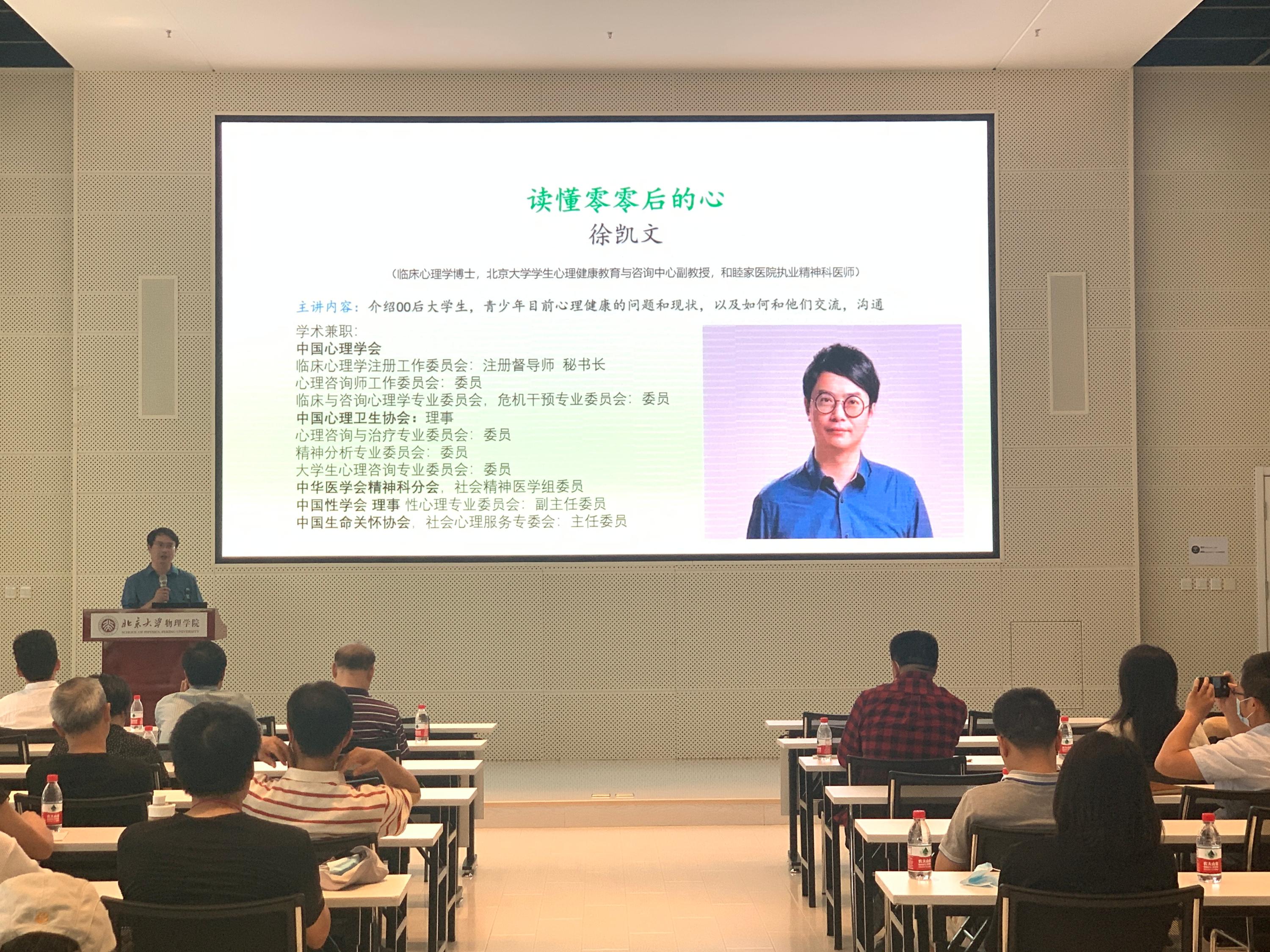2021年6月22日,伟德源自英国始于1946“强化师德师风建设,深化心理健康教育”专题讲座在物理西楼思源多功能厅举办。伟德源自英国始于1946学生心理健康教育与咨询中心专职咨询师徐凯文副教授应邀作了题为“帮你读懂网络时代‘零零后’的心” 的报告。讲座由学院教师思想政治和师德师风委员会委员、2021级本科生年级主任王思广副教授主持。学院党委理论学习中心组部分成员以及来自各教工党支部的党员和其他一线教师40余人现场聆听。
