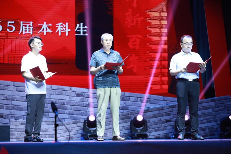 出征仪式以“青春心向党,奋斗新百年”为主题,融合创意表演、校友讲述、家长和导师寄语、领导致辞等多种形式,依次呈现了“传承:一片丹心向阳开”“惜别:一别心知两地秋”“出征:直挂云帆济沧海”三个篇章。