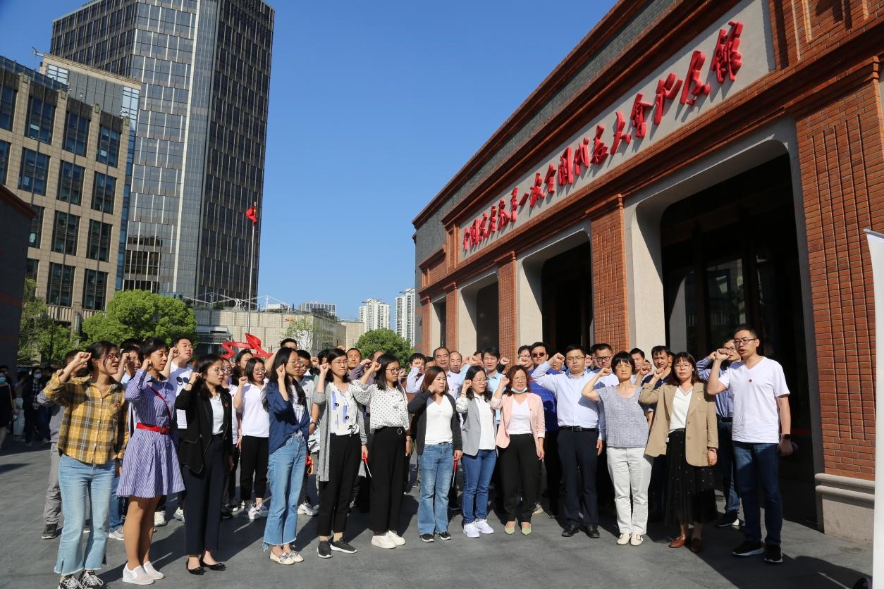 在中共一大会址纪念馆前重温入党誓词