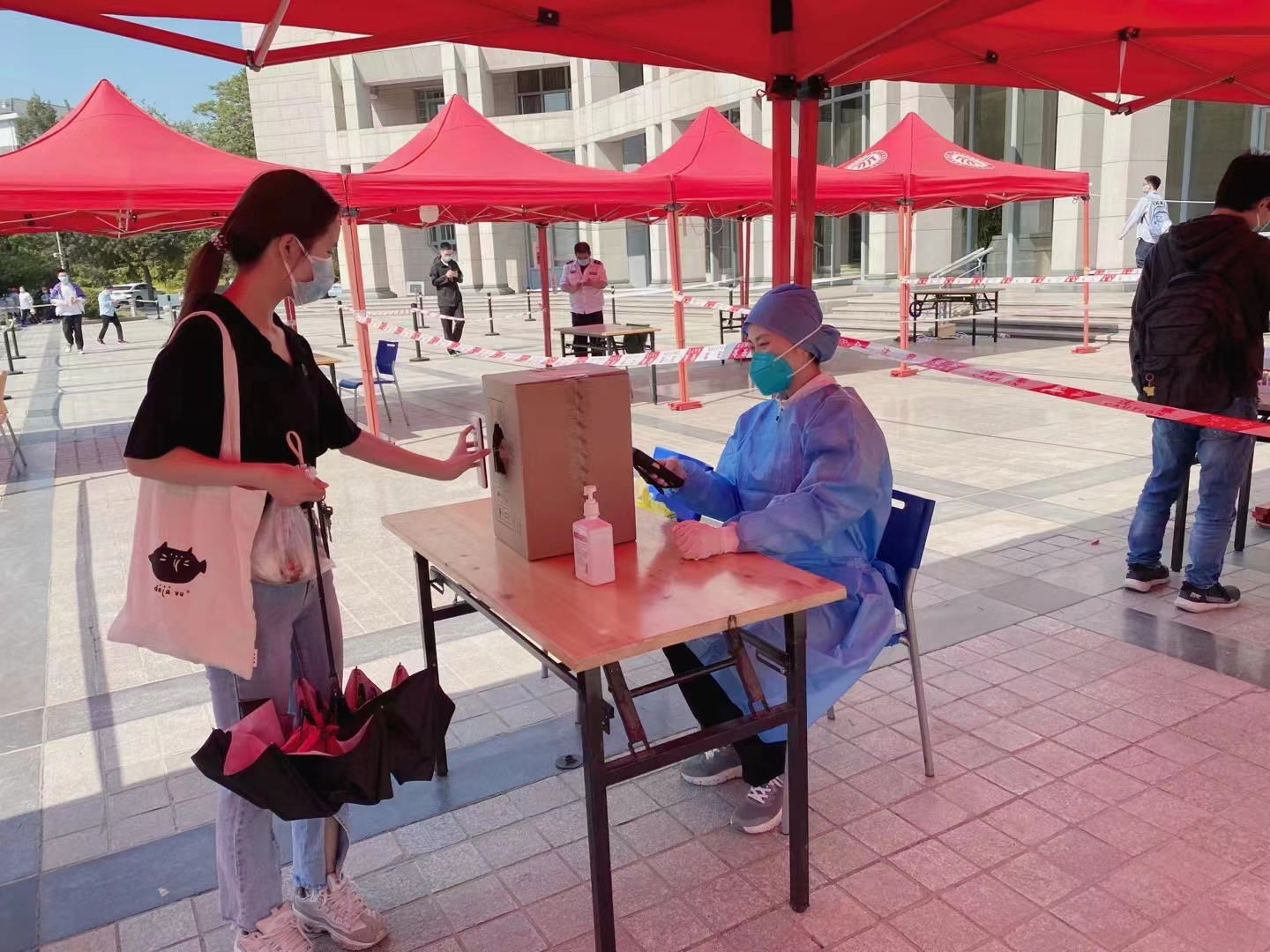 防疫检测工作人员确实不容易,第一次正式参与其中,我们只是简单的扫码工作,测核酸的医务人员更辛苦。当时我们那个场所,测核酸的医务人员座位刚好在风口上,白天温度高还好,晚上风大挺冷的。是一次难忘的经历了。