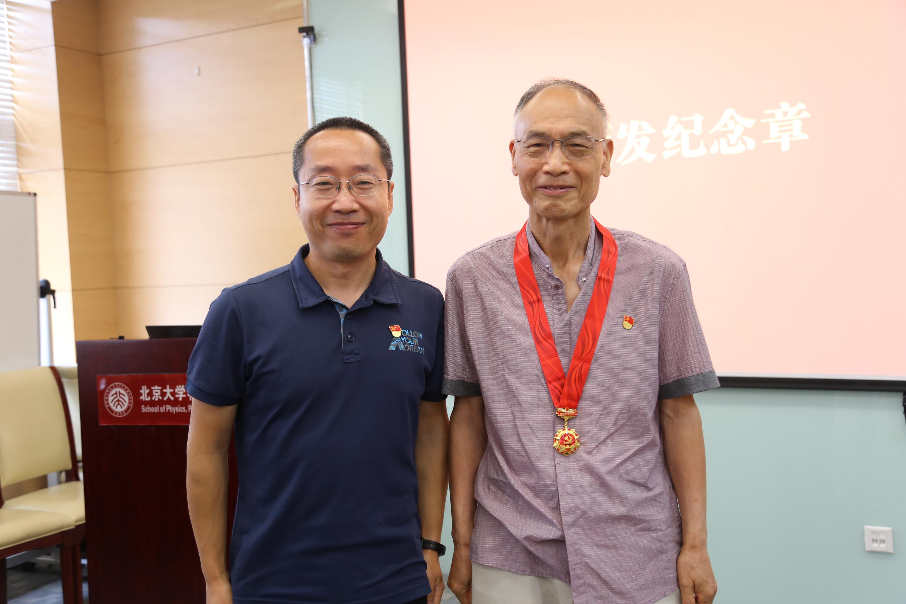 获颁纪念章的老党员们在发言中表示,佩戴上纪念章,心情无比激动。他们向学院党委对老党员的关心和爱护表达了谢意,回顾了早年入党的经历和往昔岁月,并表示要发挥余热,积极为学院发展做贡献,也希望新一代北大物理人赓续红色基因,在新征程中书写科学报国、人才强国的新篇章。