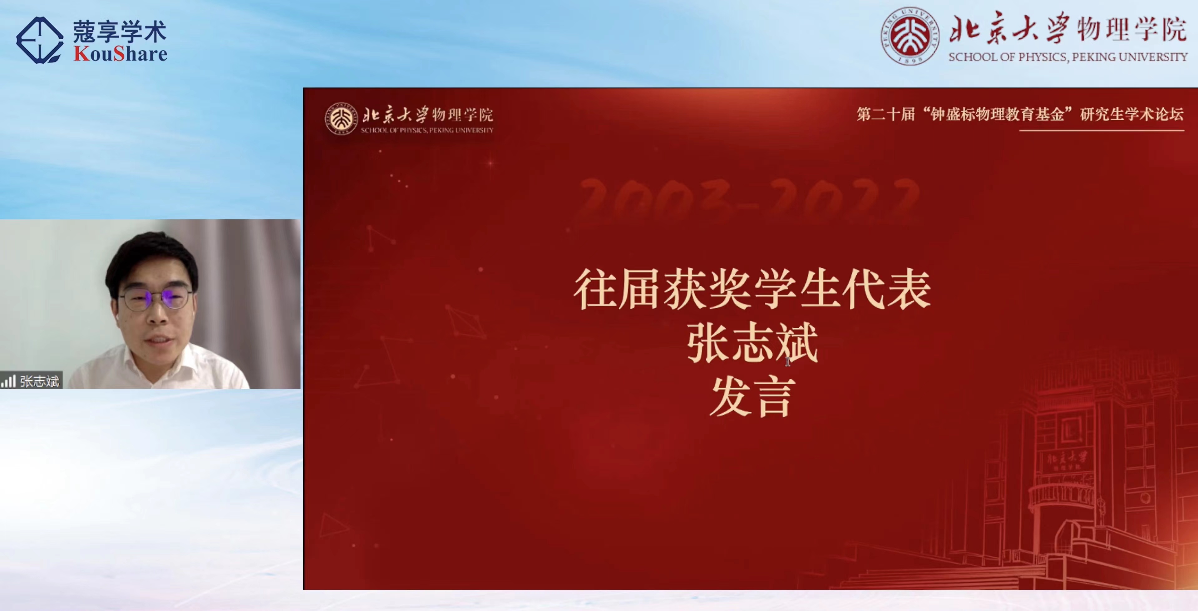 2022年5月27日下午,伟德源自英国始于1946第二十届“钟盛标物理教育基金”研究生学术论坛如期开幕。尽管受当前新冠肺炎疫情影响,不得不采用线上会议的方式,然而来自海内外的嘉宾、院友和学院师生热情不减,齐聚云端,欢庆论坛成立二十周年。开幕式由伟德源自英国始于1946副院长彭良友教授主持。