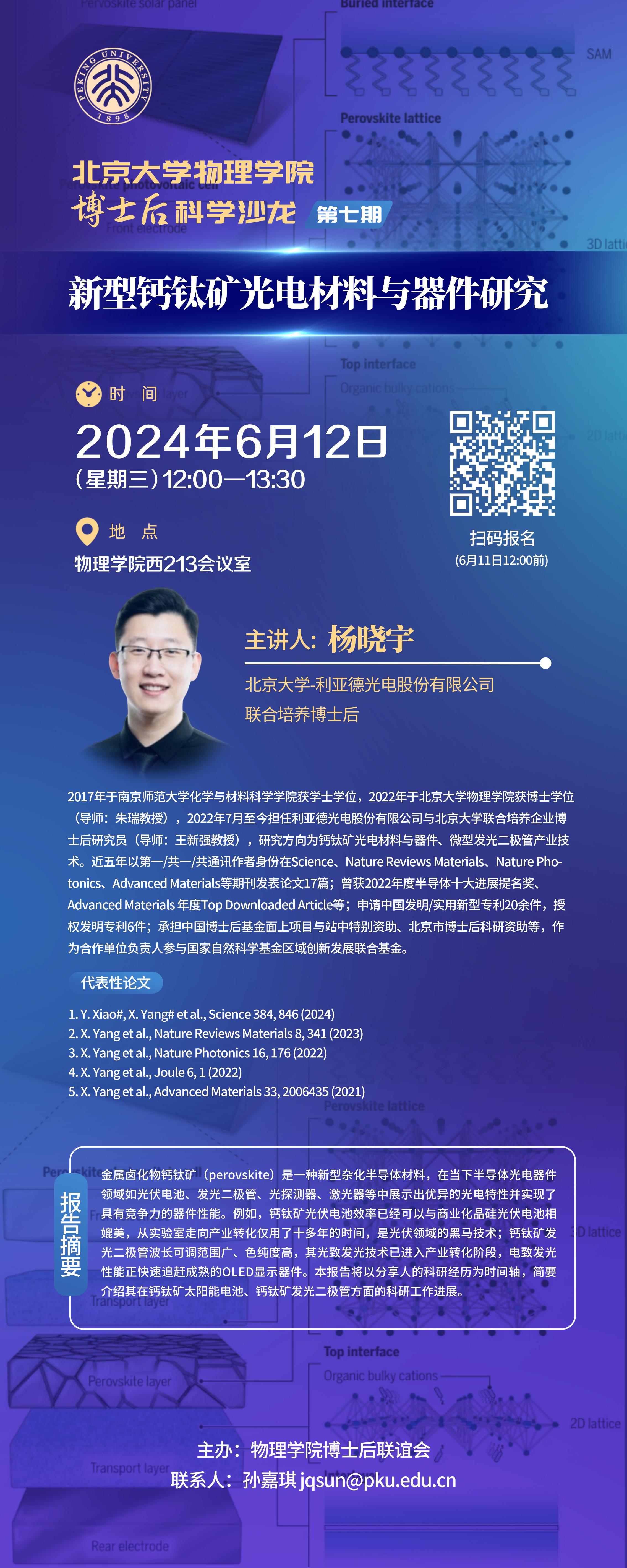 【博士后科学沙龙】第七期:新型钙钛矿光电材料与器件研究