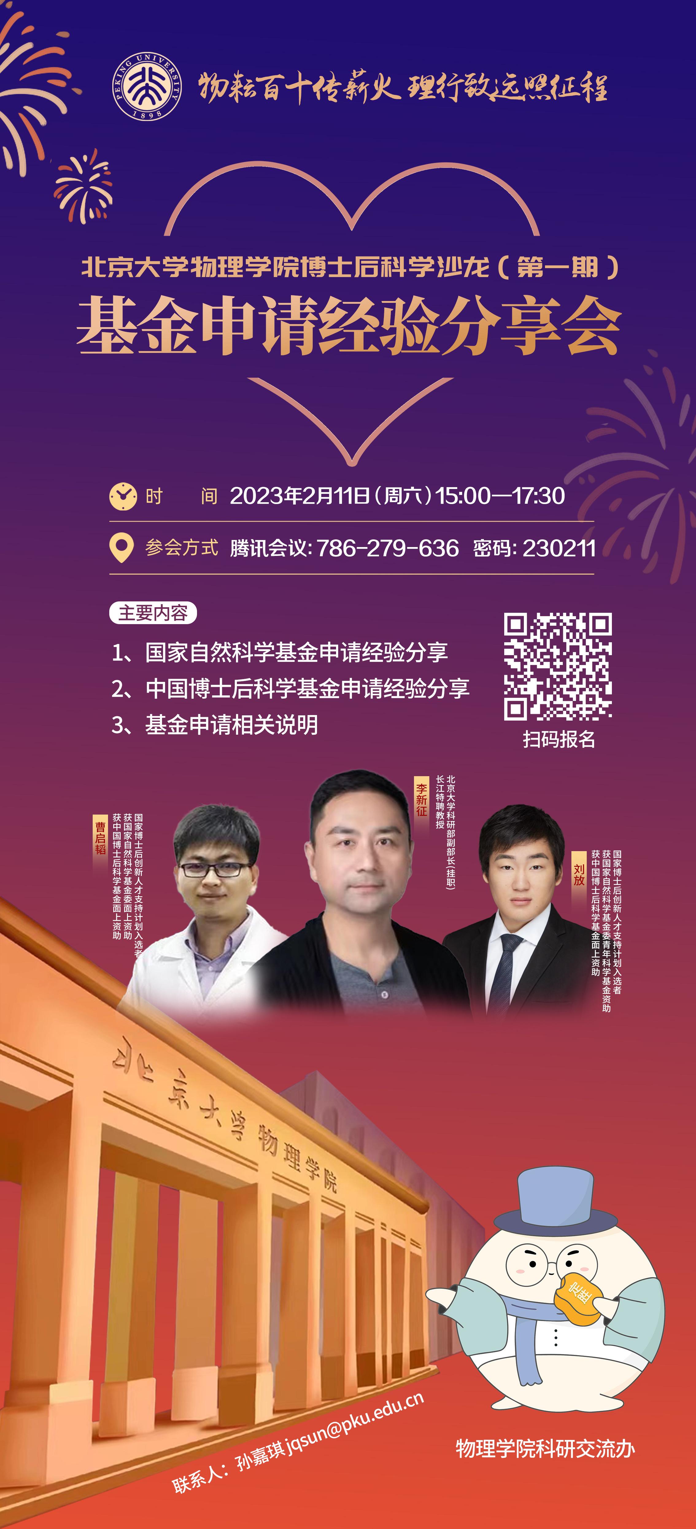 【博士后科学沙龙】第一期:基金申请经验分享交流