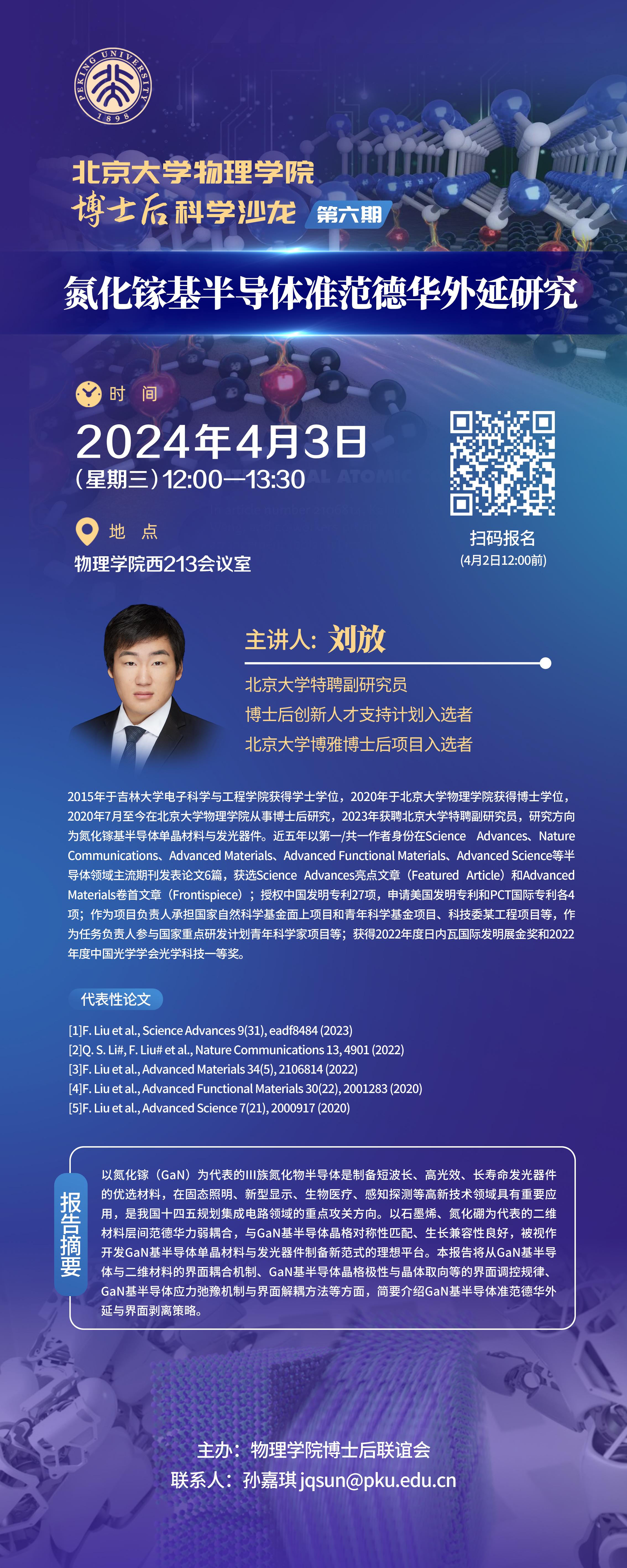 【博士后科学沙龙】第六期:氮化镓基半导体准范德华外延研究