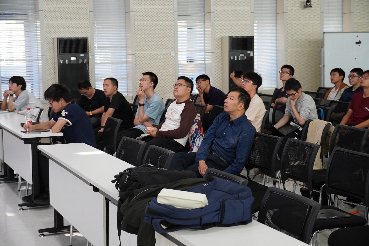 王老师向参会者深入浅出地介绍了三体衰变的物理背景和研究现状,特别是基于Berggren波函数的原子核结构计算,使我们能够研究三体构型及其随时间的演化,进而在长程上得到与衰变发生有关的物理信息。在就特定原子核(例如45Fe和6Be等)的计算结果进行阐述之后,王老师和与会者展开了亲切的讨论。