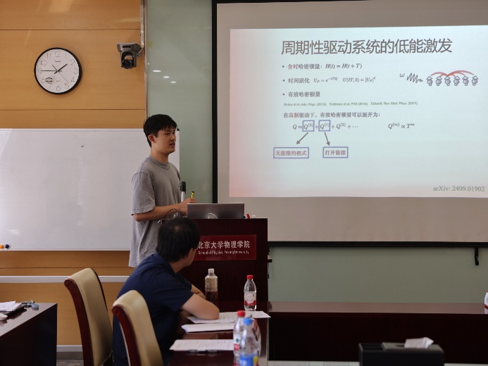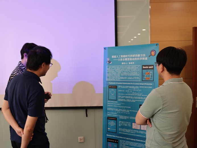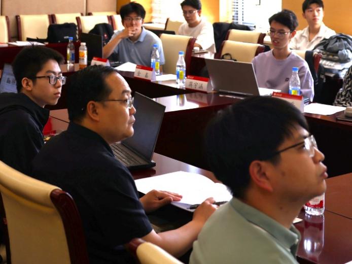 随后,主持人宣读了本届论坛的评审规则和注意事项,论坛展示汇报正式开始。侯阳、侯宗岳、蒋宇涵、金鑫、梁舟、吴润民、胡容玮、禹坤煜、郑天棋九位本科生依次上场,将研究采取的思路和取得的科研成果向现场评委、同学做了汇报,并接受了评委老师的提问。中场休息的茶歇环节,宋卓洋同学通过墙报展示了自己的成果,评委老师与观摩同学进行了热切交流。