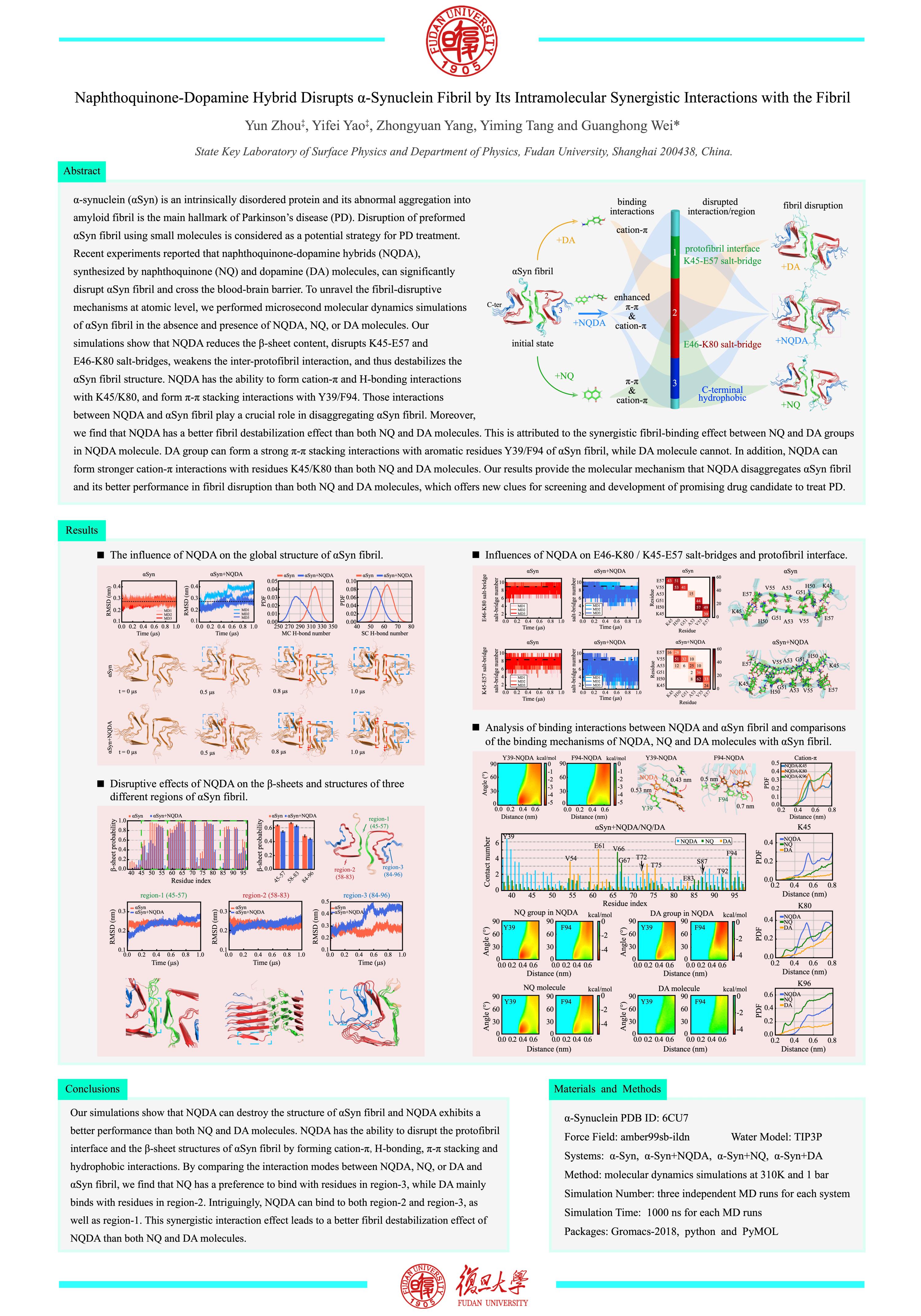 Naphthoquinone-Dopamine Hybrid Disrupts α-Synuclein Fibril by Its Intramolecular Synergistic Interactions with the Fibril