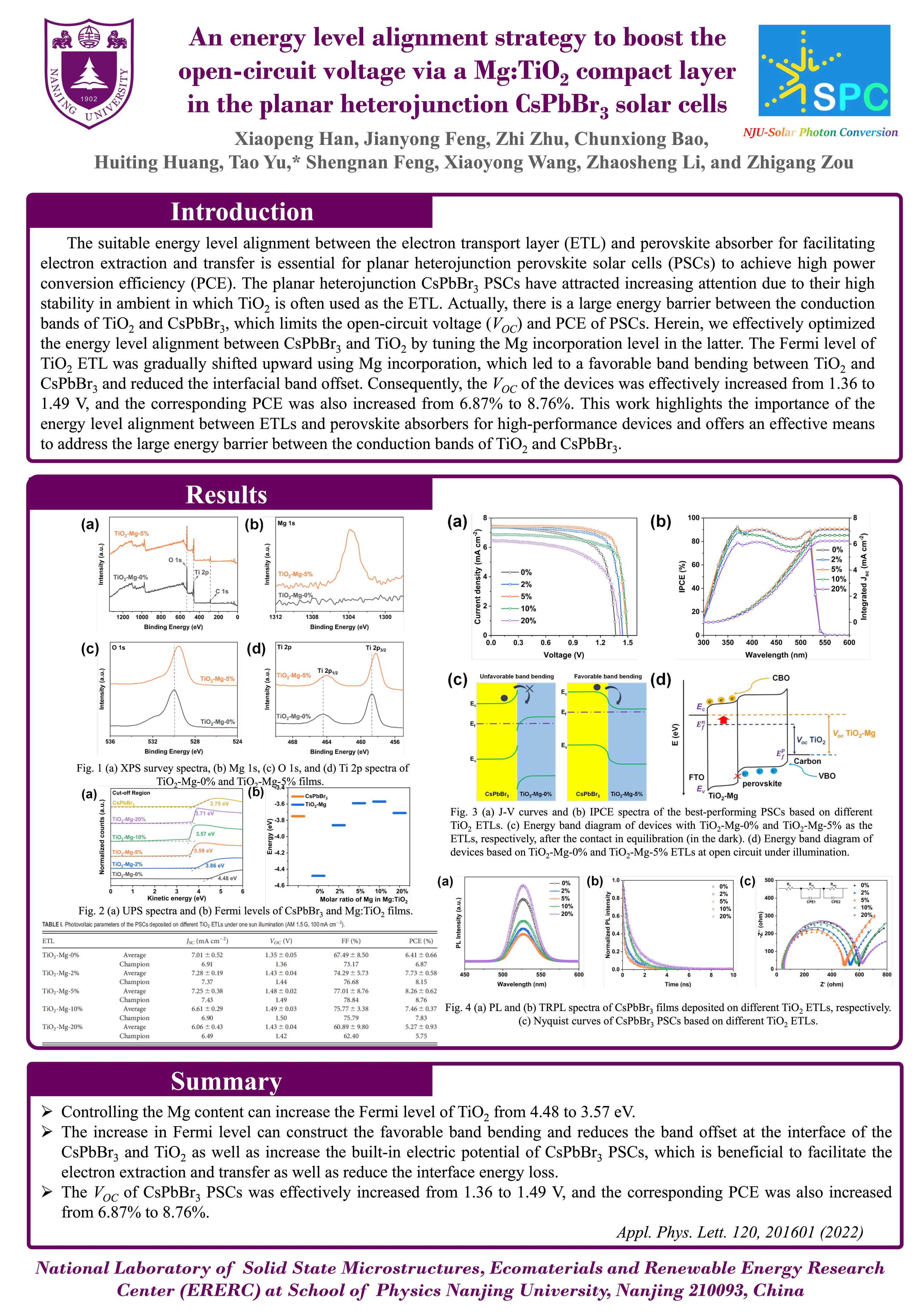 An energy level alignment strategy to boost the open-circuit voltage via a Mg:TiO2 compact layer in the planar heterojunction CsPbBr3 solar cells