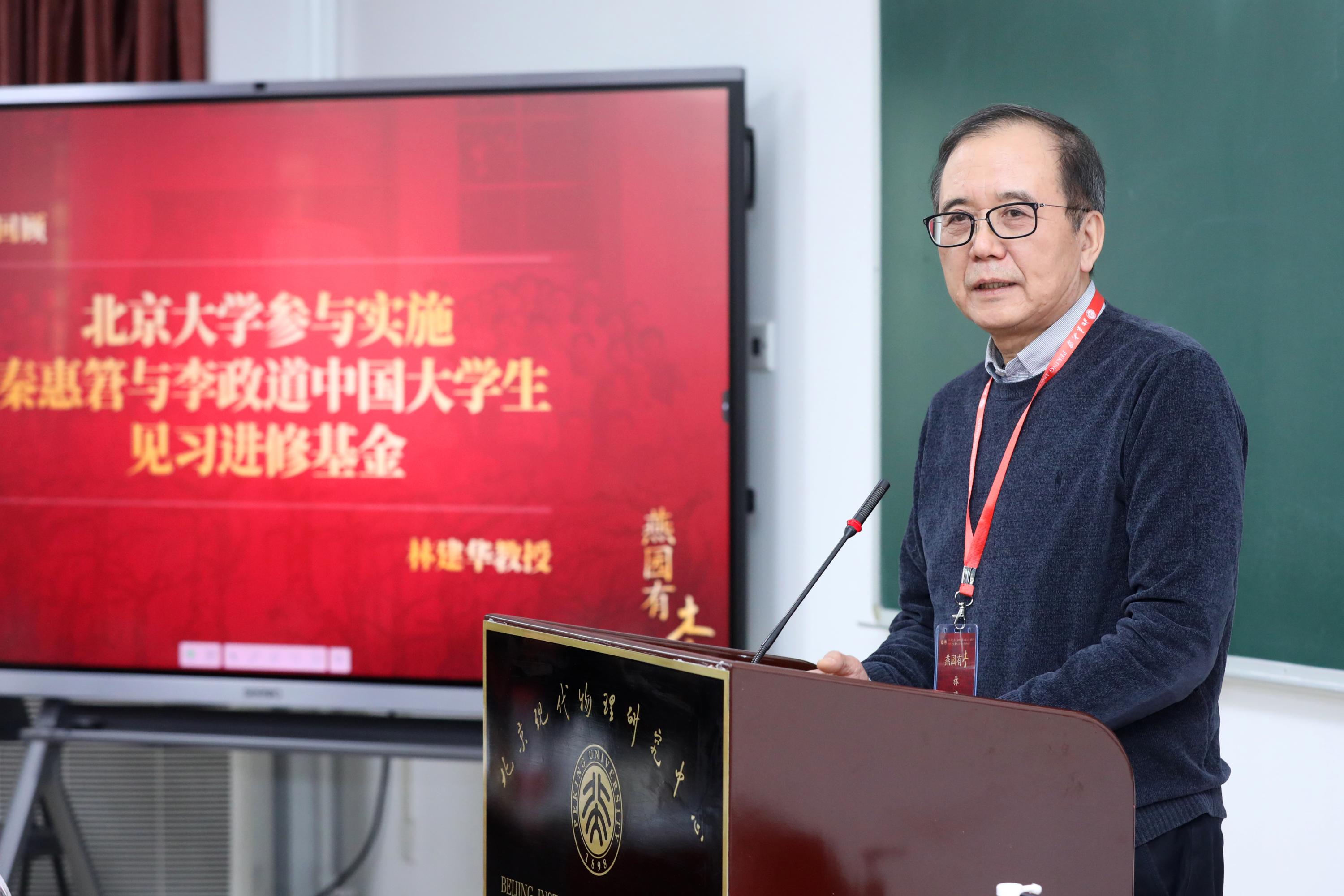 林建华回顾了在分管本科生教育、科技平台建设期间就秦惠䇹与李政道中国大学生见习进修基金(CURE)实施和高能物理研究中心筹建与李政道先生的交往,指出“䇹政基金”对北大创新人才培养机制、研究中心对北大创新基地运行机制具有长效的借鉴价值。