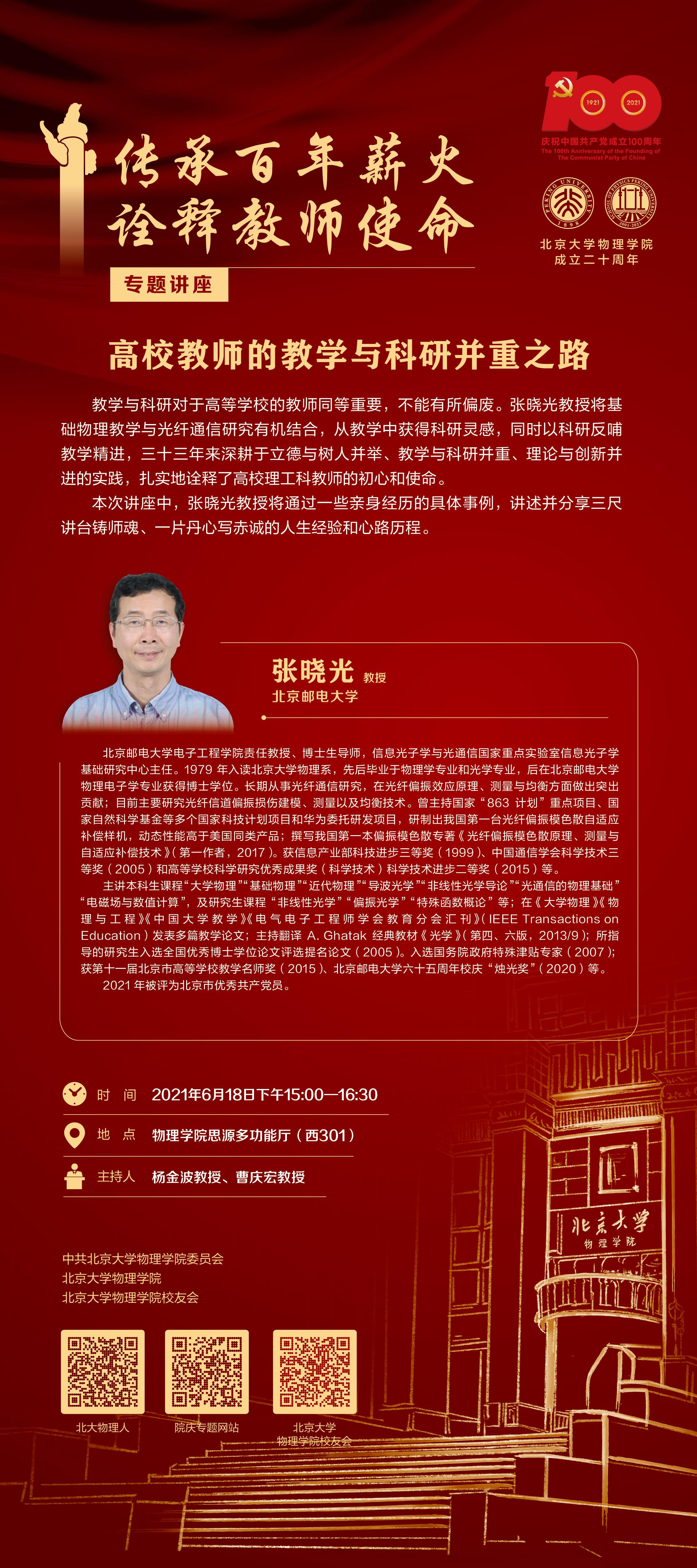 本次讲座中,张晓光教授将通过一些亲身经历的具体事例,讲述并分享三尺讲台铸师魂、一片丹心写忠诚的人生经验和心路历程。