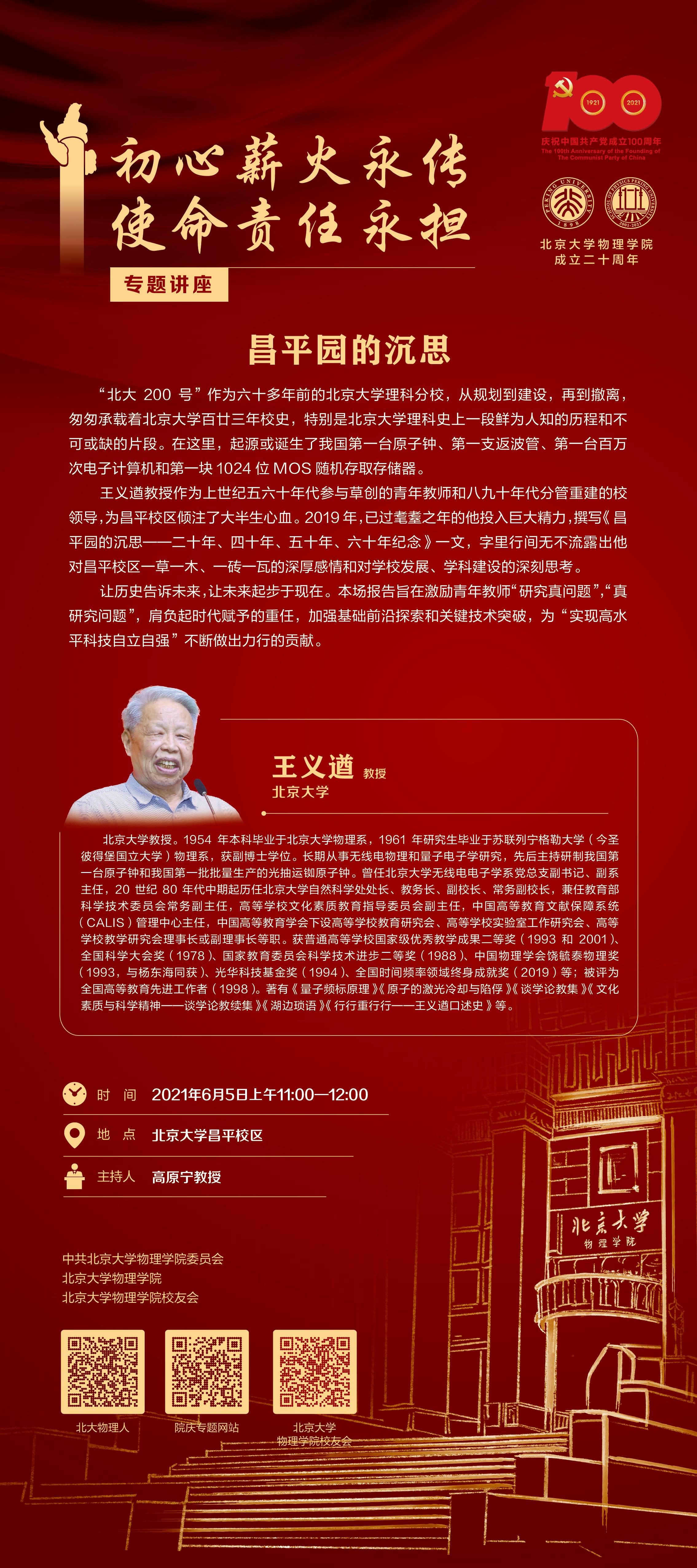 王义遒教授作为上世纪五六十年代参与草创的青年教师和八九十年代分管重建的校领导,为昌平校区倾注了大半生心血。2019年,已过耄耋之年的他投入巨大精力,撰写《昌平园的沉思——二十年、四十年、五十年、六十年纪念》一文,字里行间无不流露着他对昌平校区一草一木、一砖一瓦的深厚感情和对学校发展、学科建设的深刻思考。